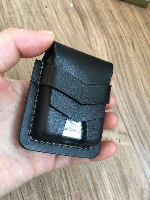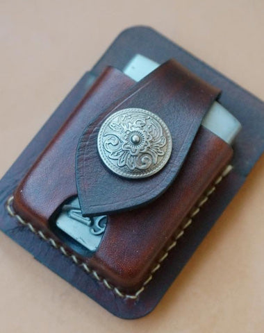 Design: Handmade Brown Thick Leather Lighter Cover Black Protective Lighter Cover For Men