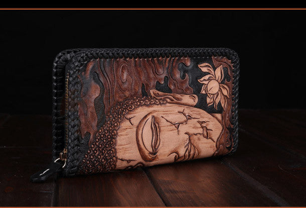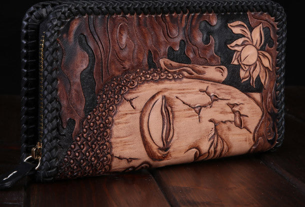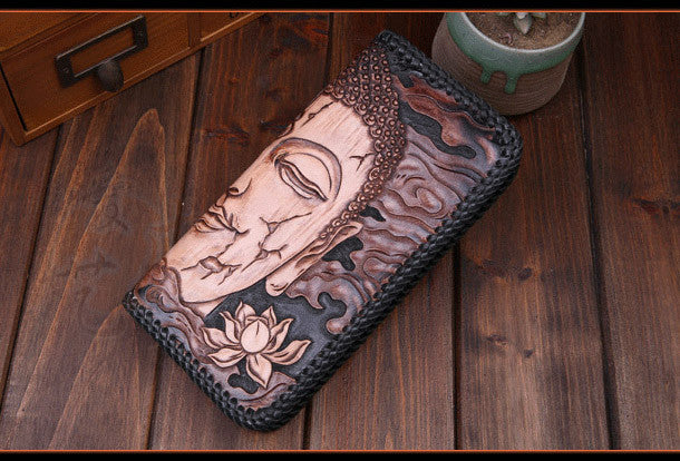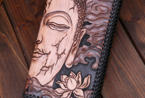 Design: Black ?Long Clutch?Leather Buddha?Wallet