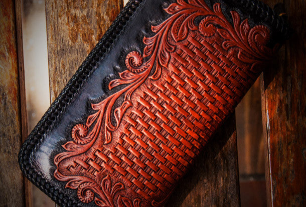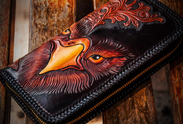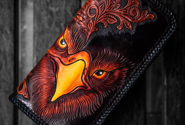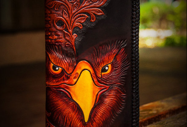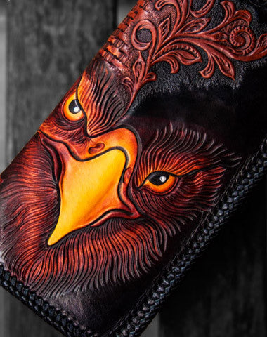 Design: Black?Carved Tooled eagle?Clutch Long?Leather Wallet