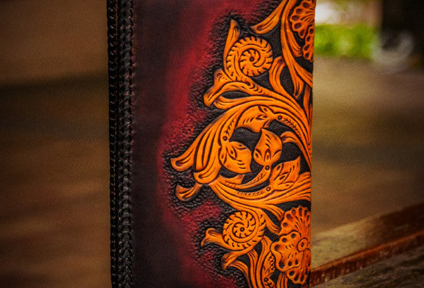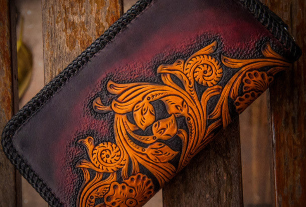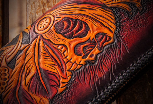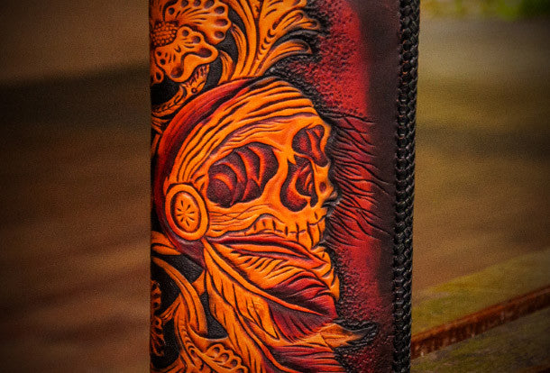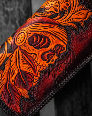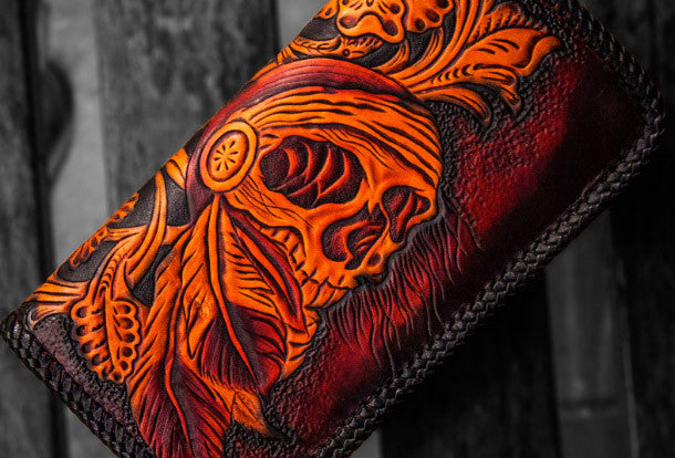 Design: Black?Carved Tooled skull? Clutch Long?Leather Wallet