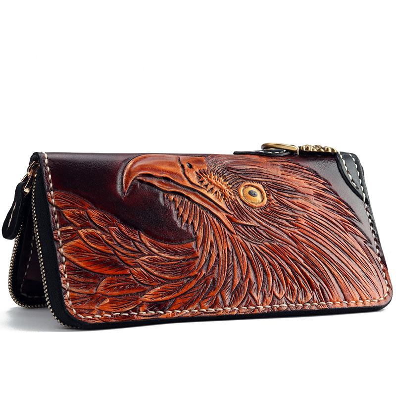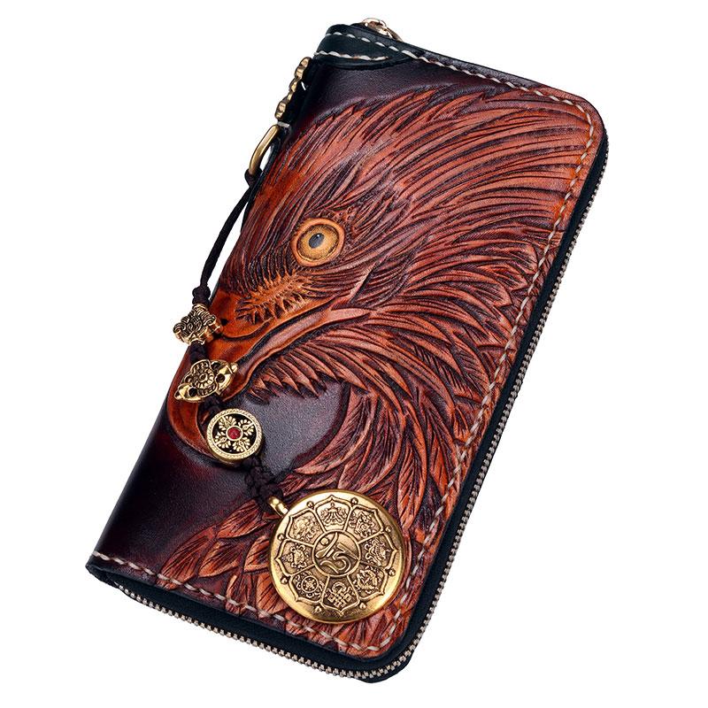 Design: Handmade Leather Eagle Mens Chain Biker Wallet Cool Leather Wallet With Chain Wallets for Men