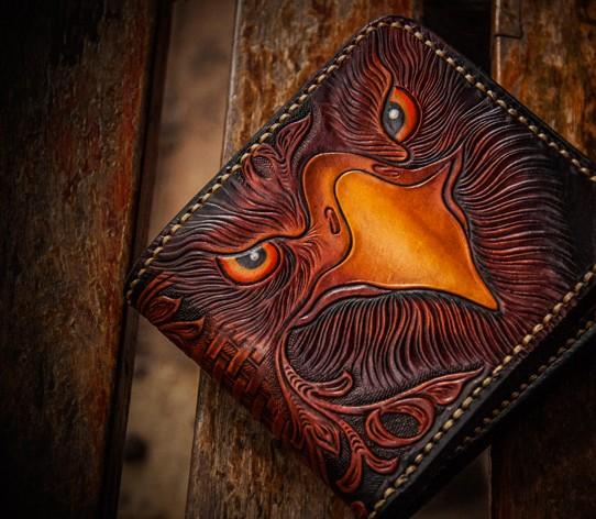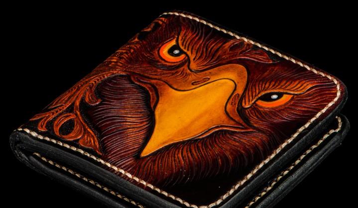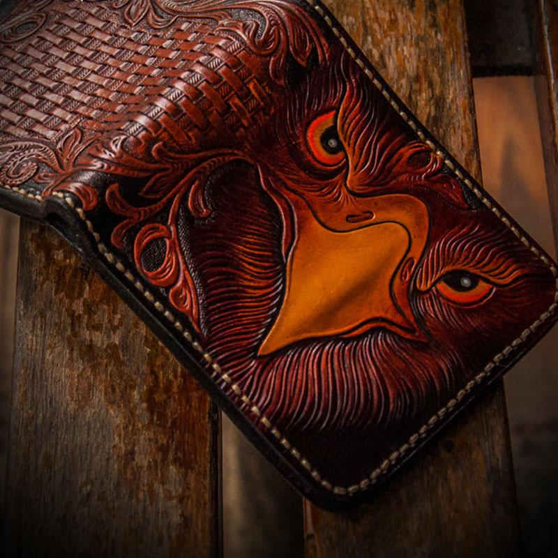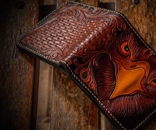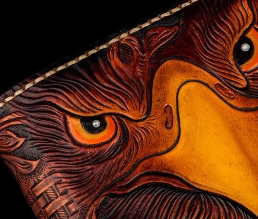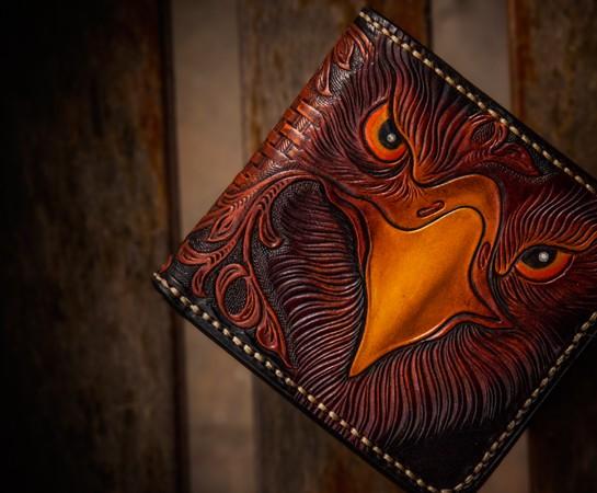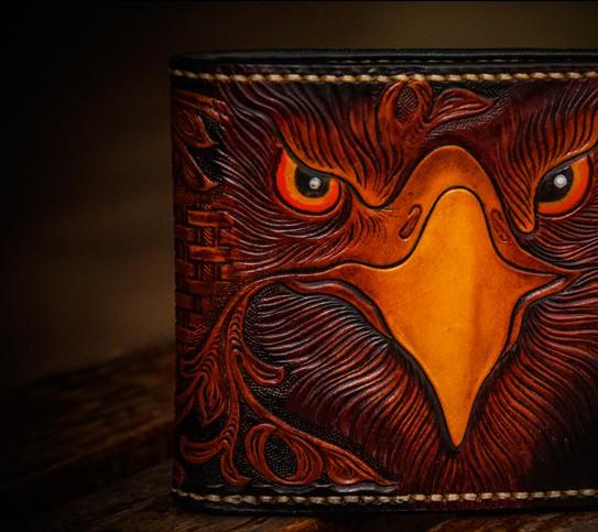 Design: Handmade Leather Eagle Tooled Mens billfold Wallet Cool Leather Wallet Slim Wallet for Men