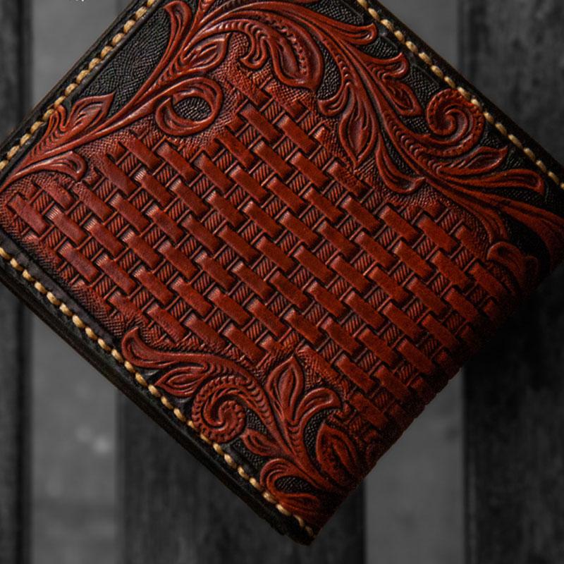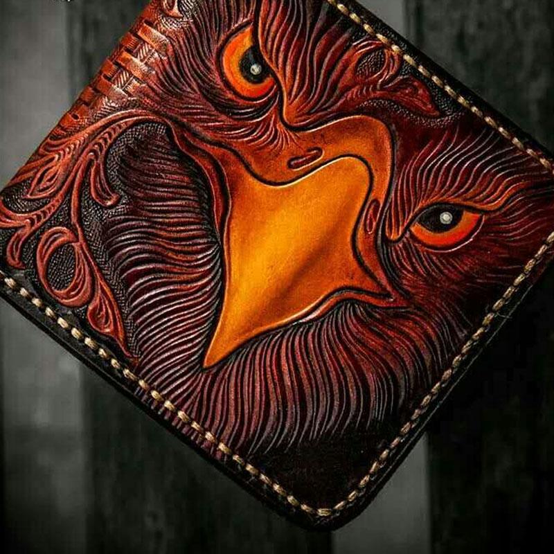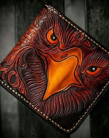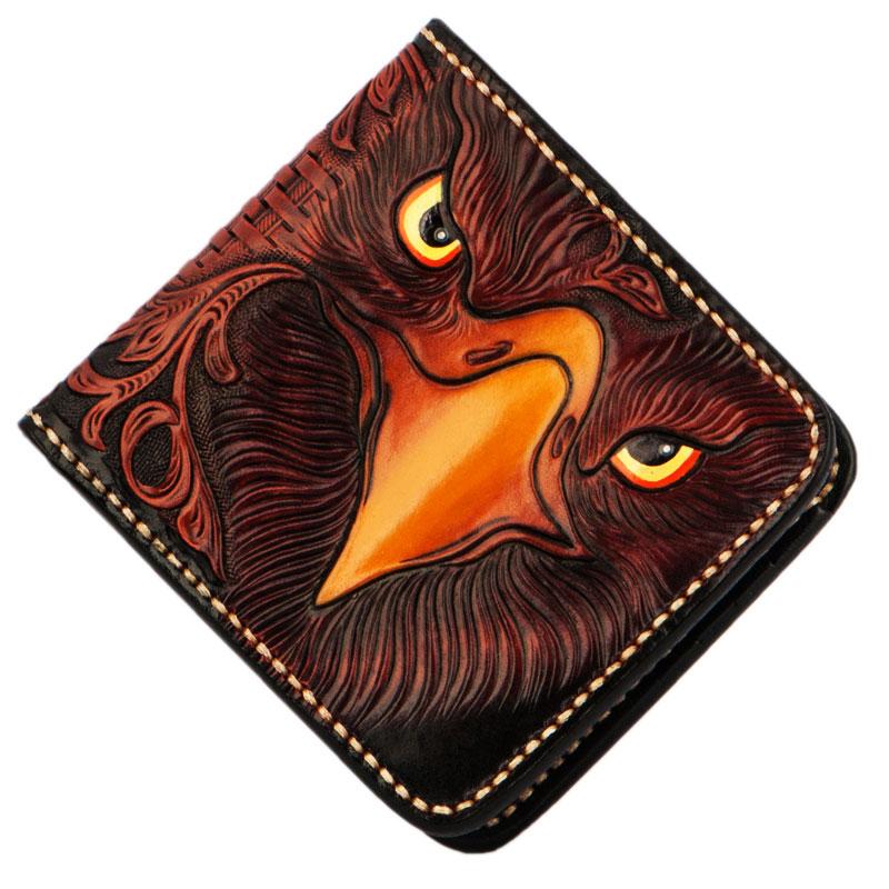 Style: Handmade Leather Eagle Tooled Mens billfold Wallet Cool Leather Wallet Slim Wallet for Men