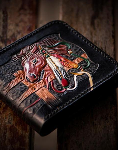 Design: Handmade Leather Fine Horse Tooled Mens billfold Wallet Cool Leather Wallet Slim Wallet for Men