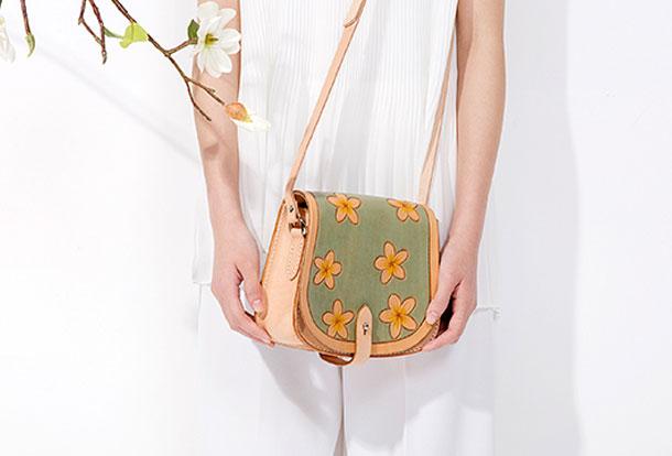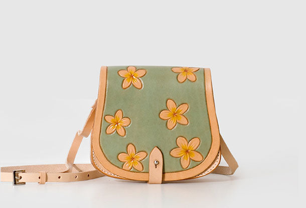 Design: Handmade Leather floral saddle bag shoulder purse for women leather shoulder bag