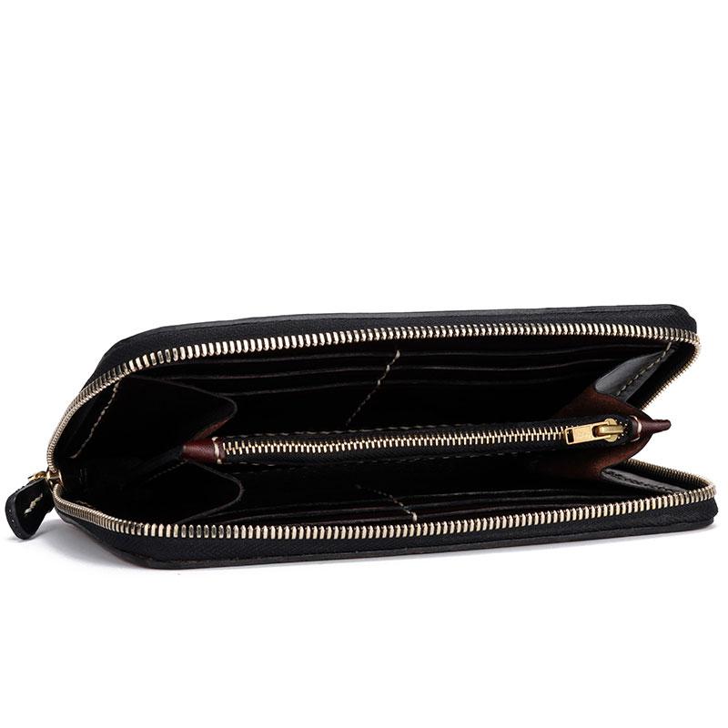 Slots: 2 full size bill slot, 12 card holders, 1 zipper slot