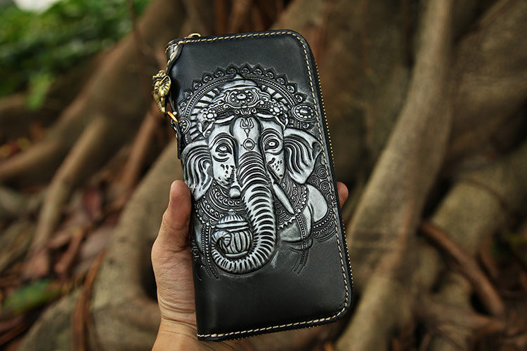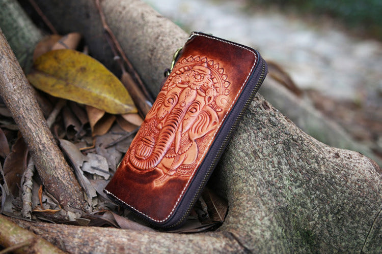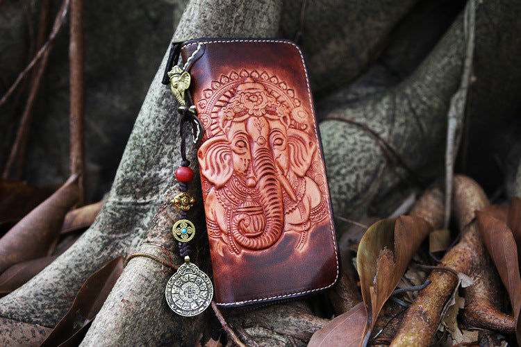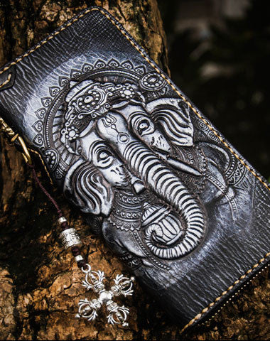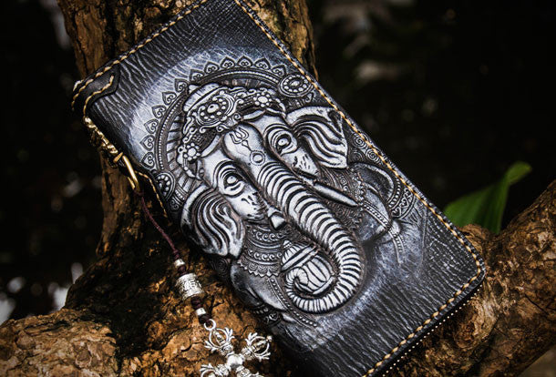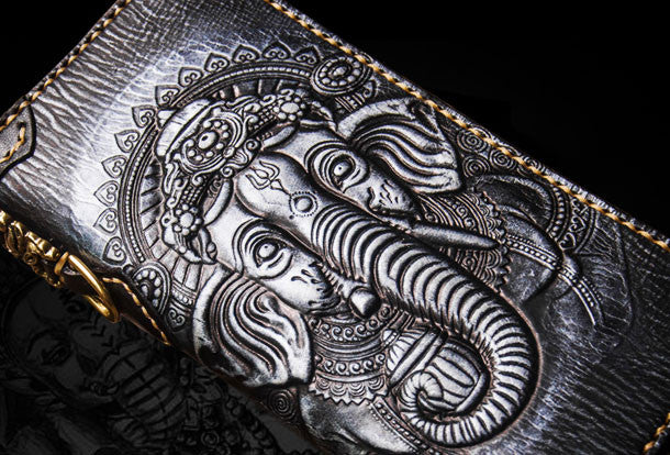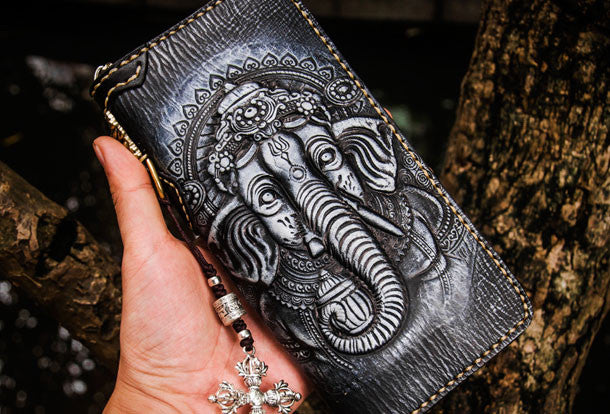 The combination of its exquisite Ganesha pattern, premium leather, and practical design makes this leather tooled biker wallet a perfect accessory for those who appreciate the fusion of tradition and modernity. Whether you choose the classic brown or the sleek black version, this wallet is sure to make a statement and serve as a reliable companion on your journeys.