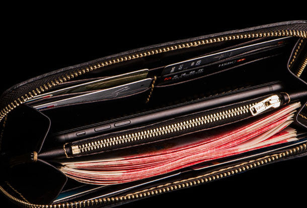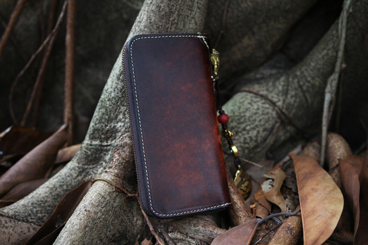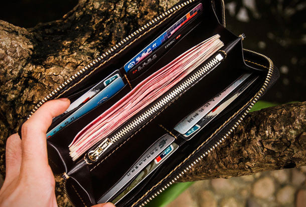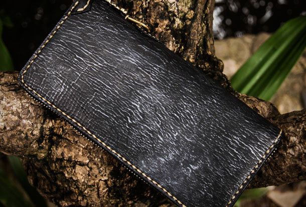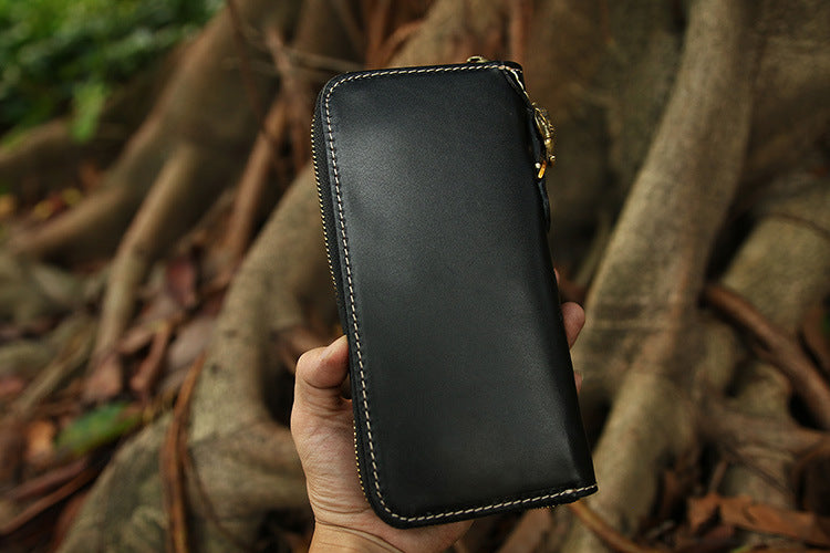 Handmade leather Geneisha biker wallet clutch zip long wallet black leather men phone