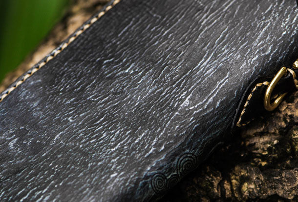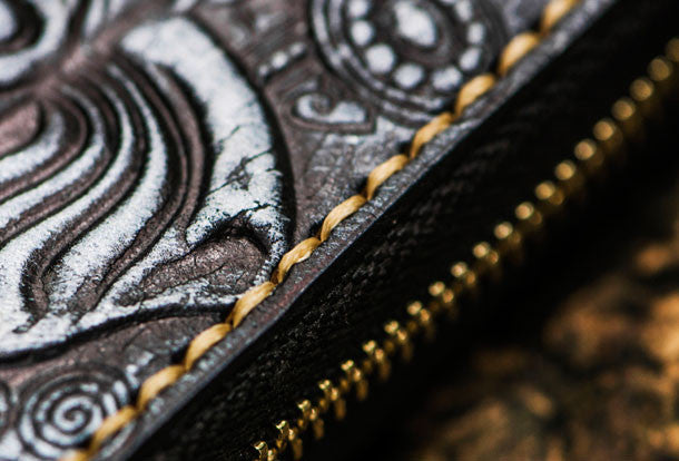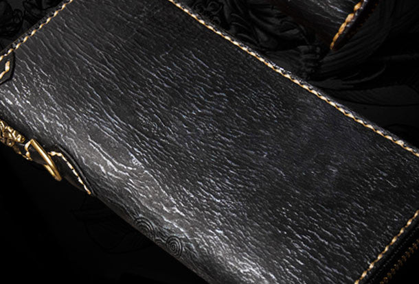 Design: Black Carved Tooled Geneisha biker Clutch zip Leather Wallet