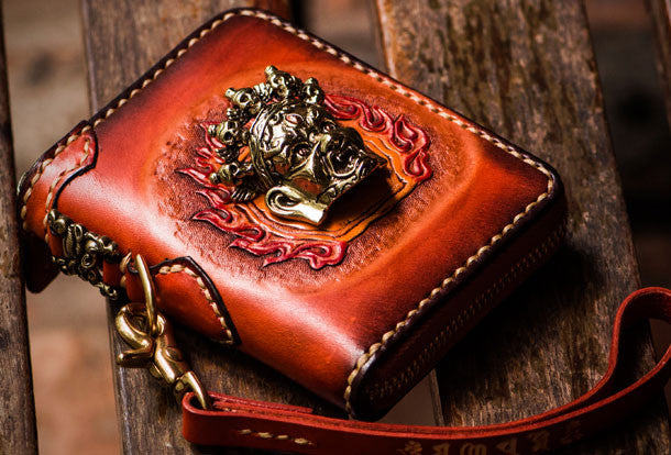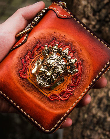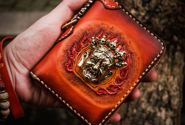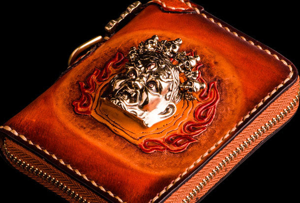 Design: Brown Carved Tooled prajn?¡ì? biker Clutch zip Leather Wallet