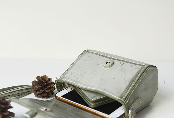 Handmade leather green purse phone bag shoulder bag cossbody bag purse women