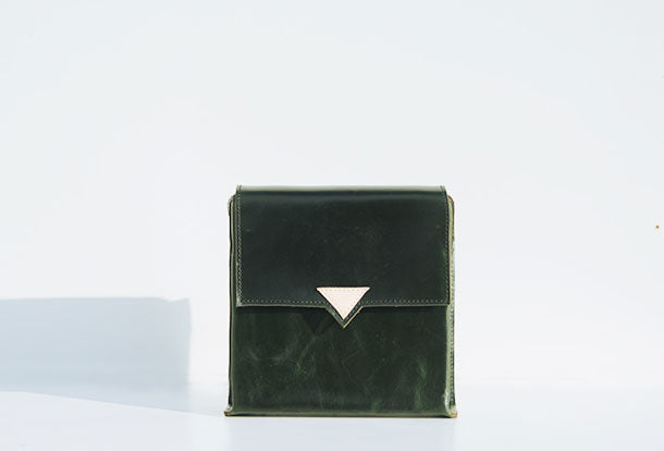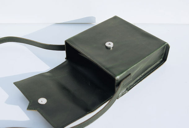 Handmade leather green square purse phone bag shoulder bag cossbody bag purse women