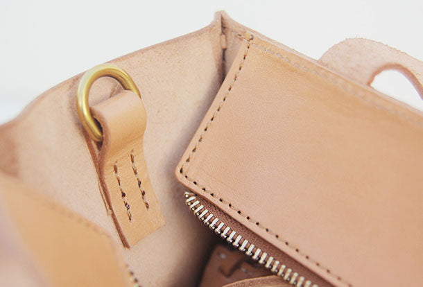 Design: Handmade leather handbag beige shopper bag shoulder bag cossbody bag purse women