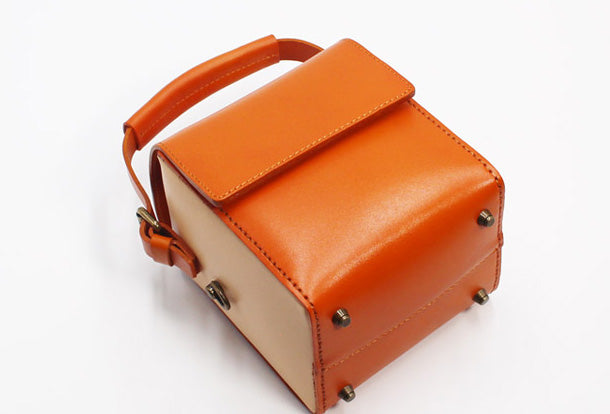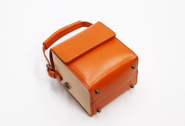 Design: Handmade Leather Handbag Square Doctor Bag Purse Crossbody Shoulder Bag for Girl Women Lady