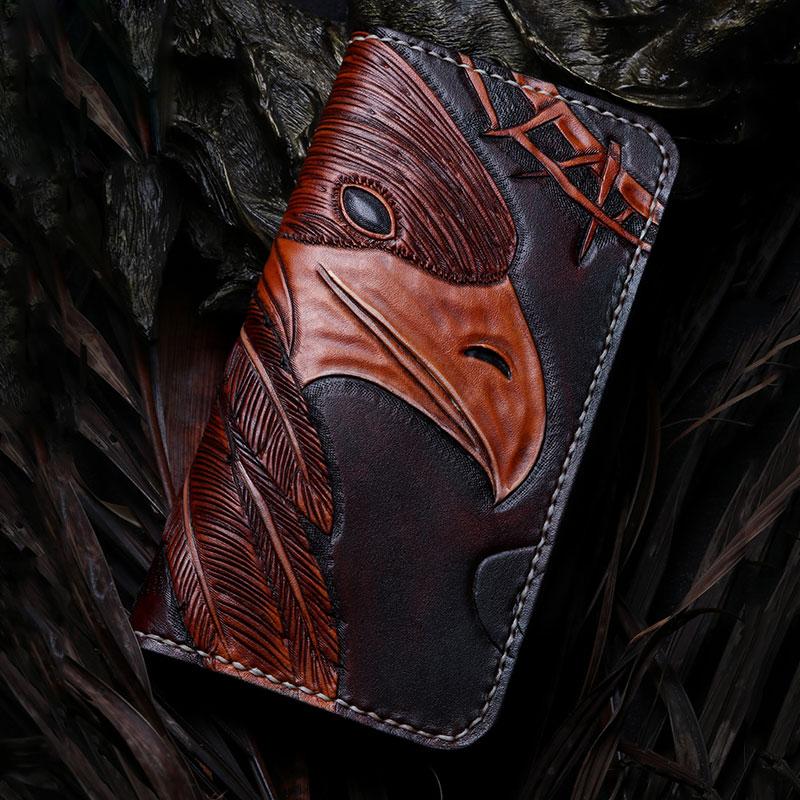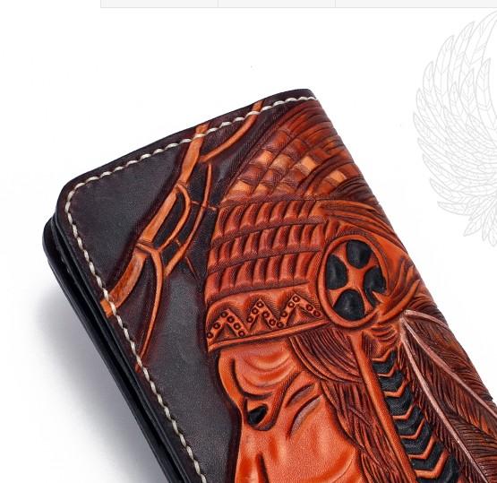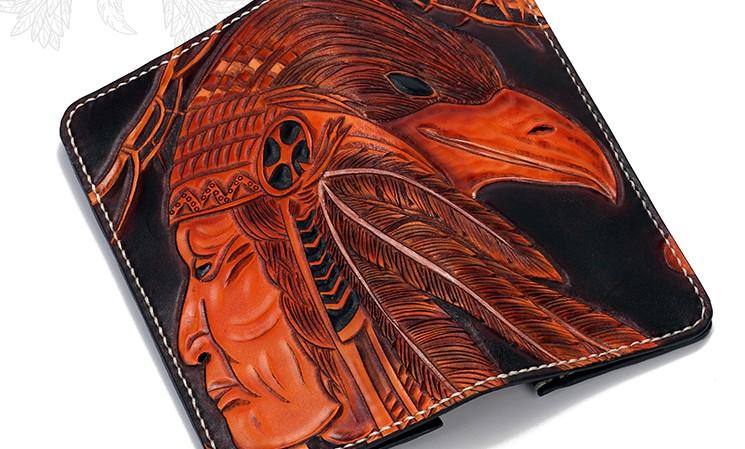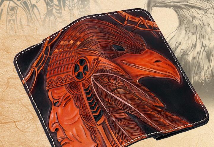 Design: Handmade Leather Indian Eagle Mens Chain Biker Wallet Cool Leather Wallet With Chain Wallets for Men