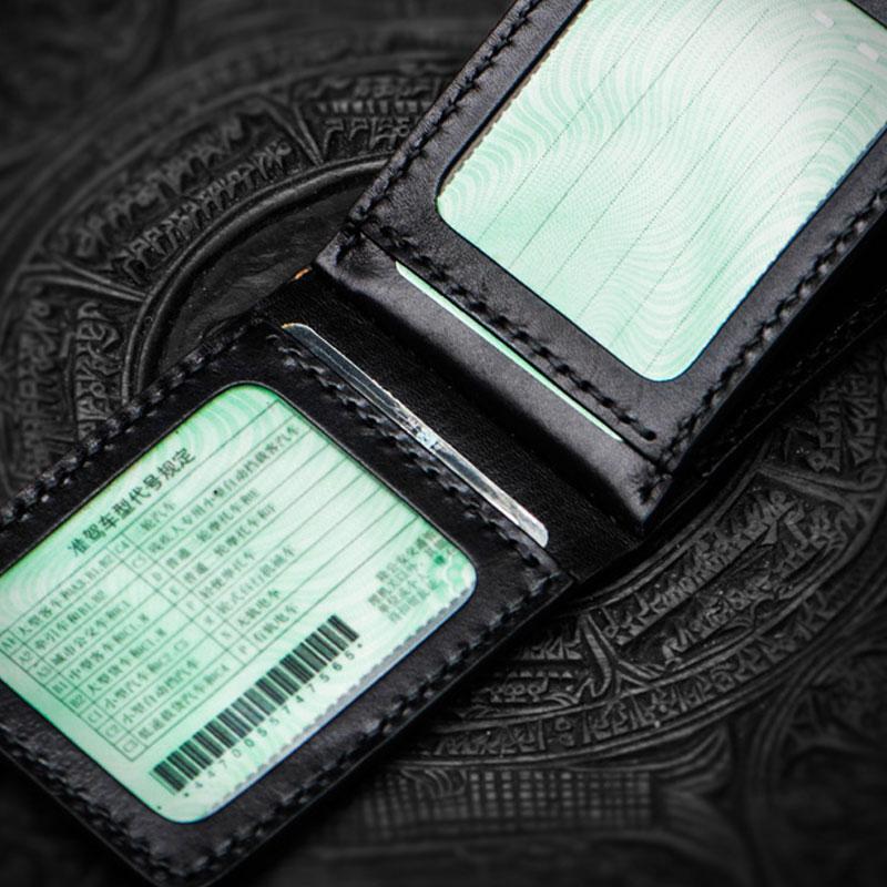Design: Handmade Leather License Wallet Tooled Mens billfold Wallet Cool Leather Wallet Slim Wallet for Men