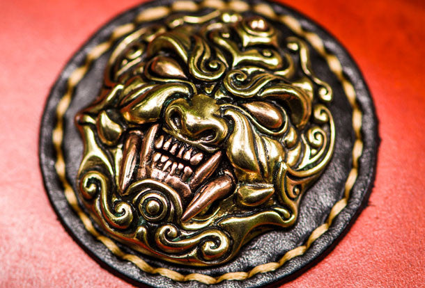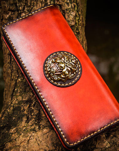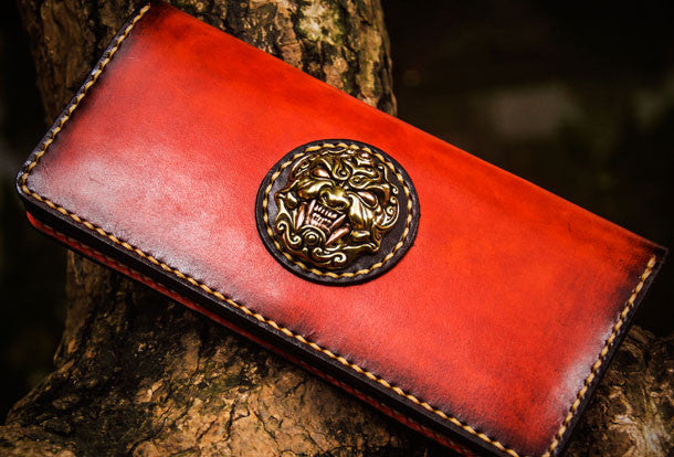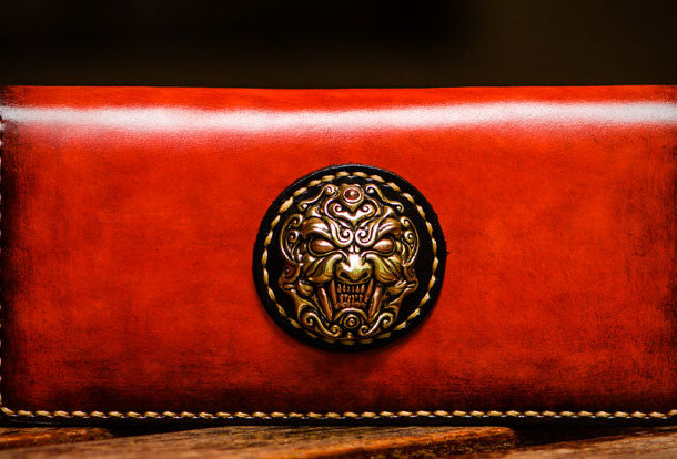 Design: Brown Tooled lion biker Clutch zip Leather Wallet