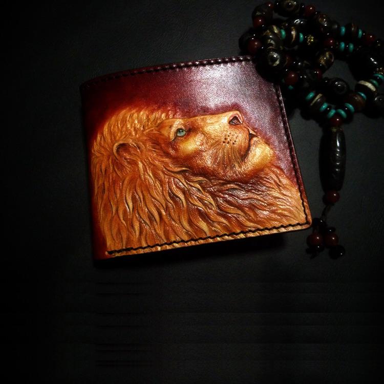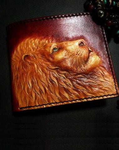 Style: Handmade Leather Lion Tooled Mens billfold Wallet Cool Leather Wallet Slim Wallet for Men