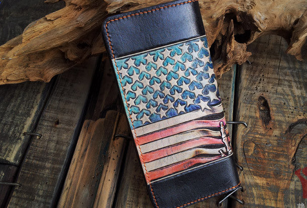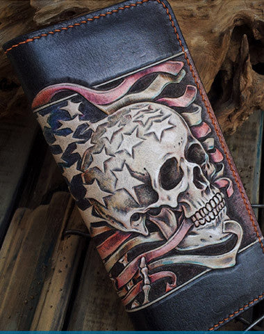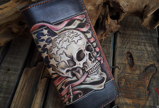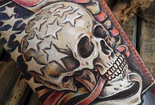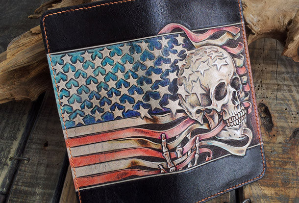Design: Black Carved Tooled American Skull?Leather Wallet