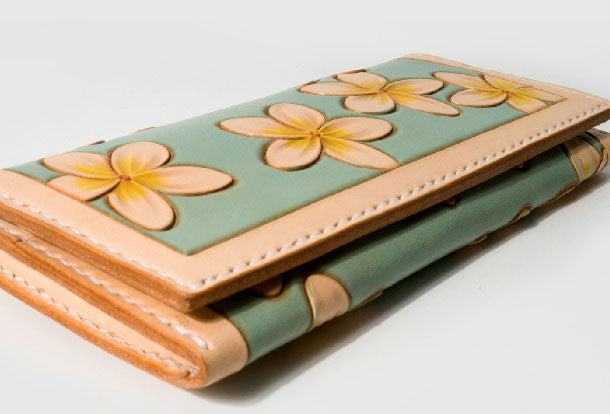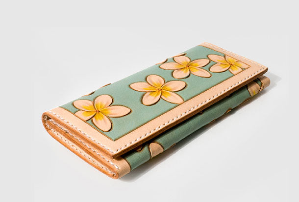 Handmade leather long clutch purse wallet floral cute wallet for women