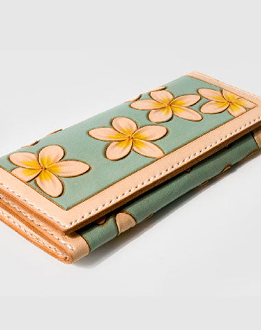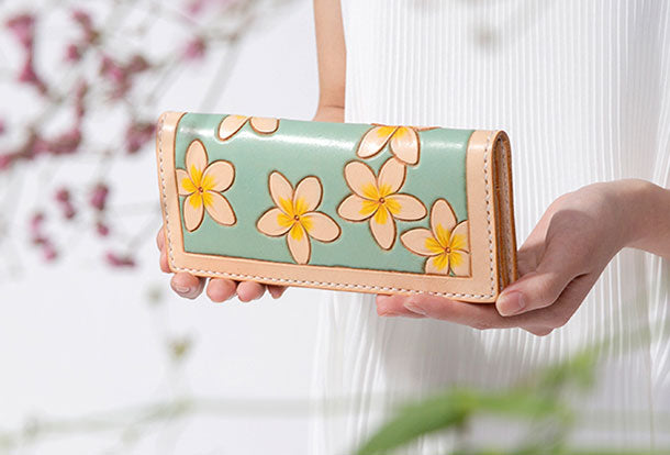 Style: Handmade leather long clutch purse wallet floral cute wallet for women