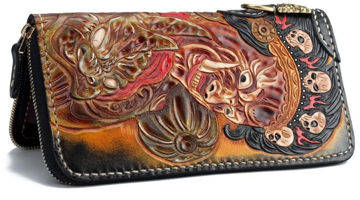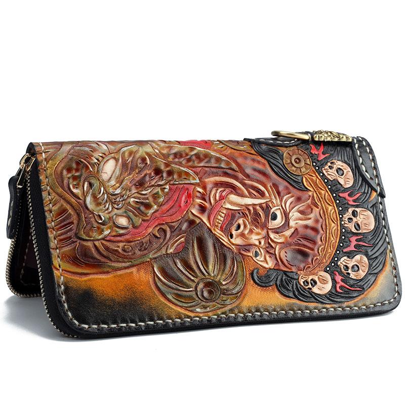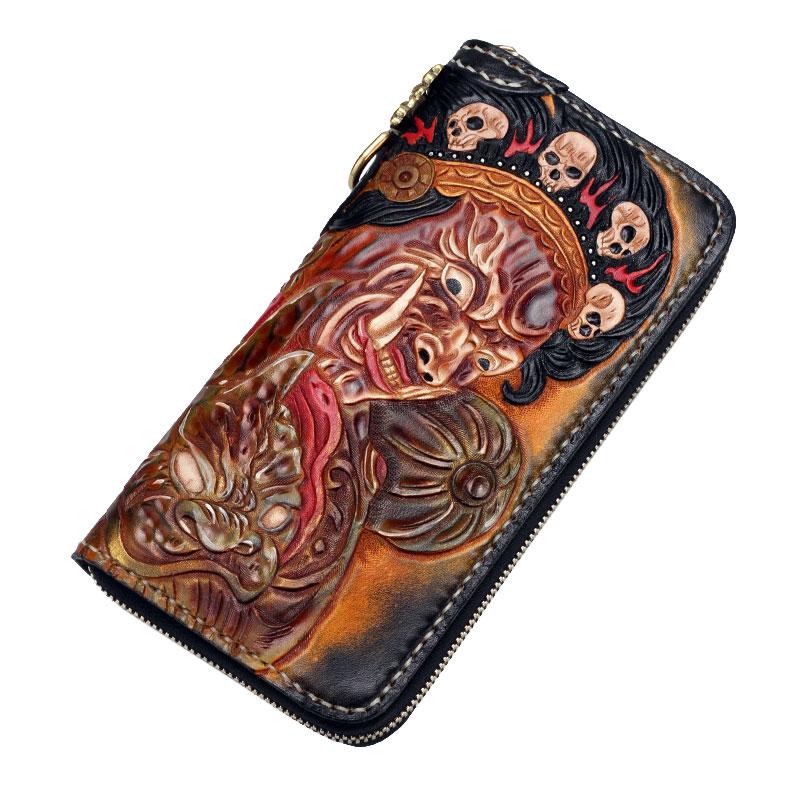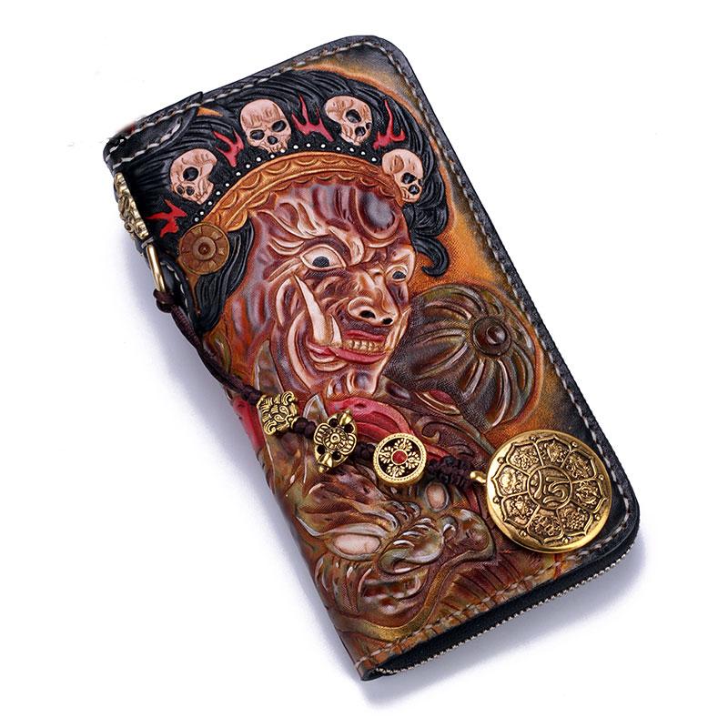 Design: Handmade Leather Mahākāla Mens Chain Biker Wallet Cool Leather Wallet With Chain Wallets for Men