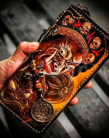 Design: Handmade Leather Mahākāla Mens Chain Biker Wallet Cool Leather Wallet With Chain Wallets for Men