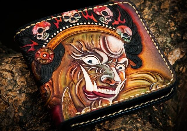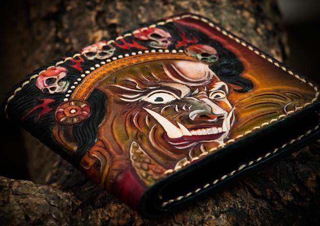 Design: Handmade Leather Mah¨¡k¨¡la Tooled Mens billfold Wallet Cool Leather Wallet Slim Wallet for Men