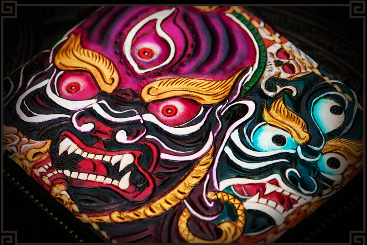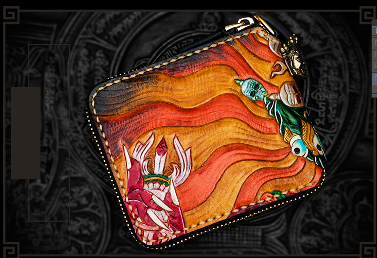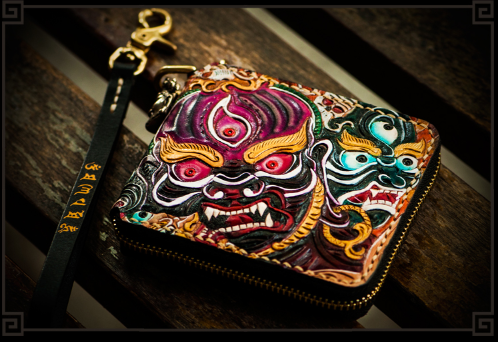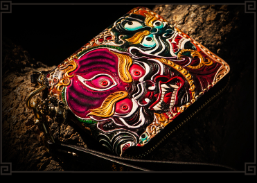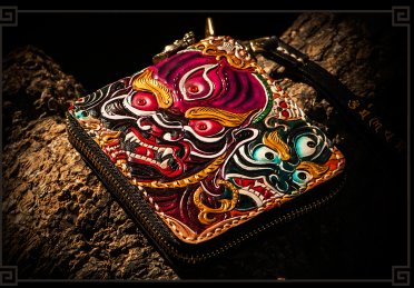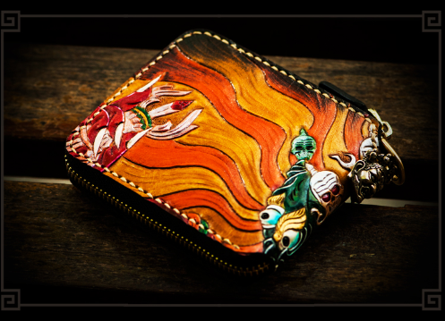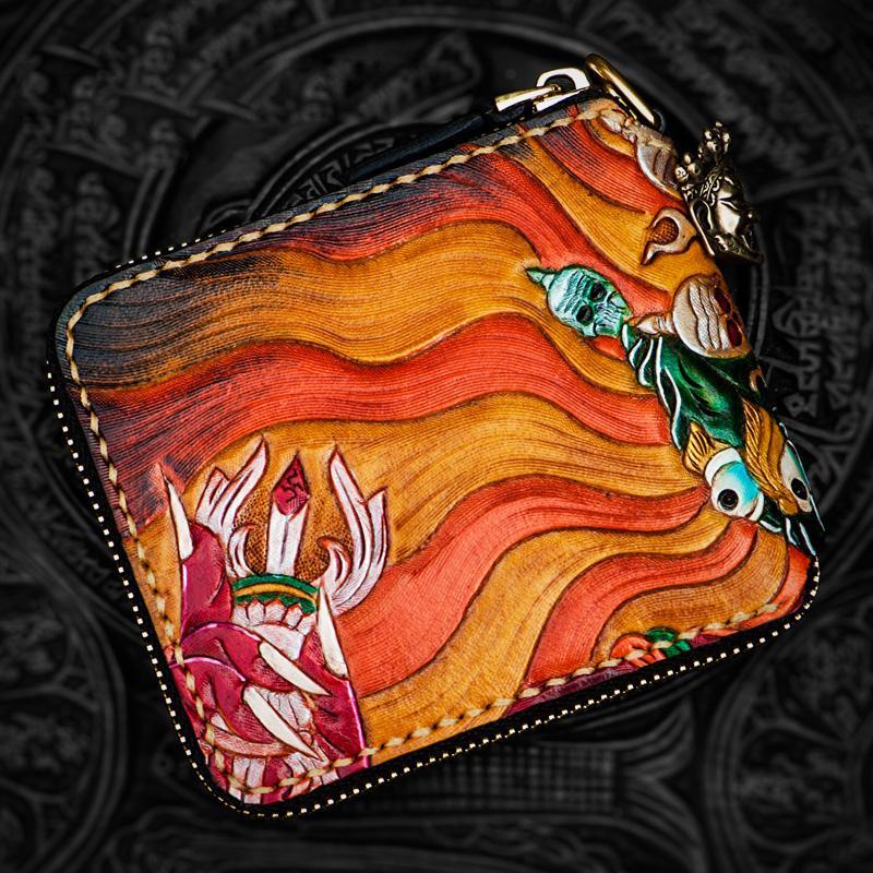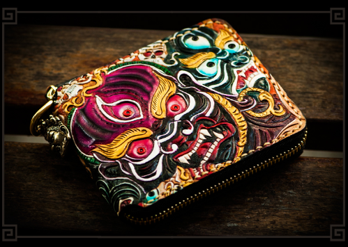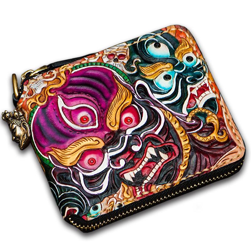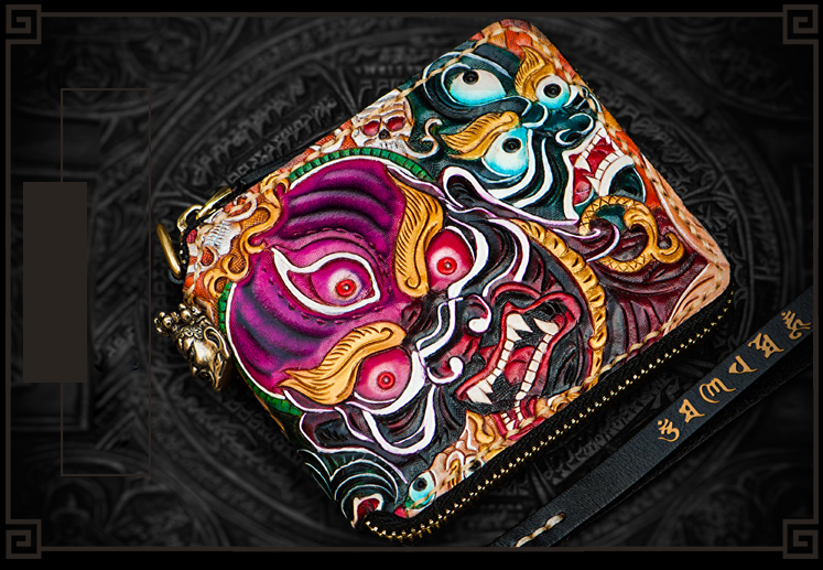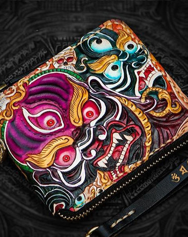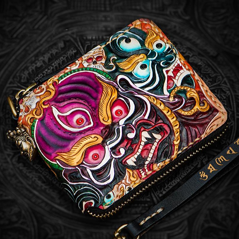 Design: Handmade Leather Maheshvara Tooled Mens billfold Wallet Cool Chain Wallet Biker Wallet for Men