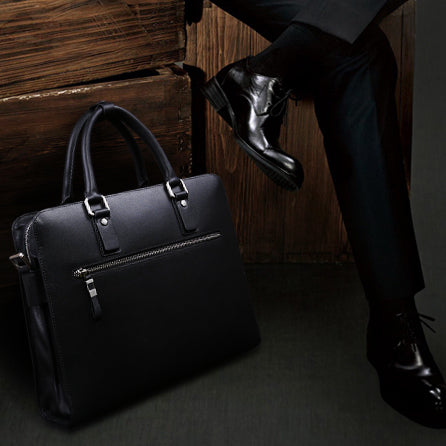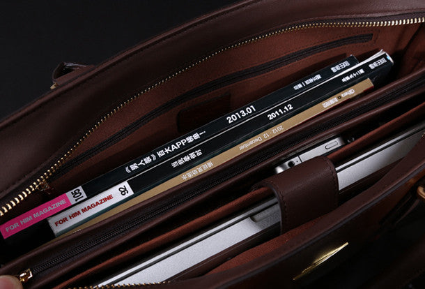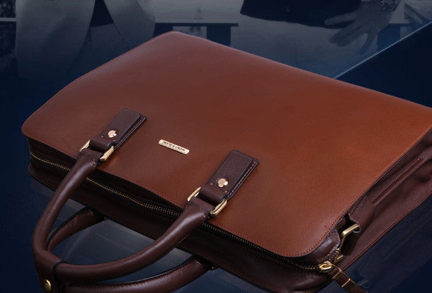 Cool Leather mens Briefcase laptop Briefcase Work Shoulder Bag Business Bag for Men