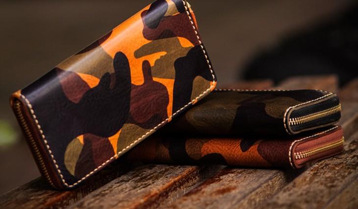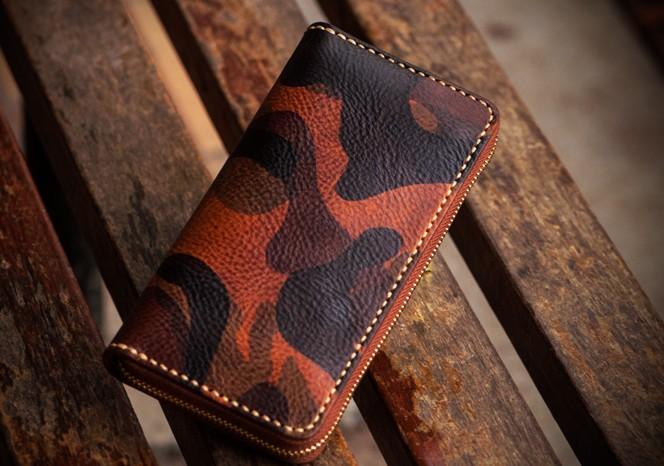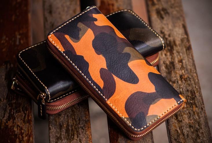 Design: Handmade Leather Men Camouflage Cool Leather Wallet Long Phone Clutch Wallets for Men