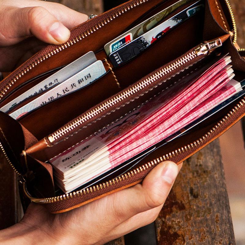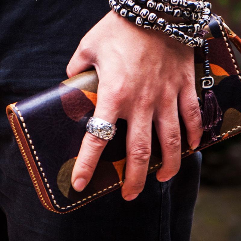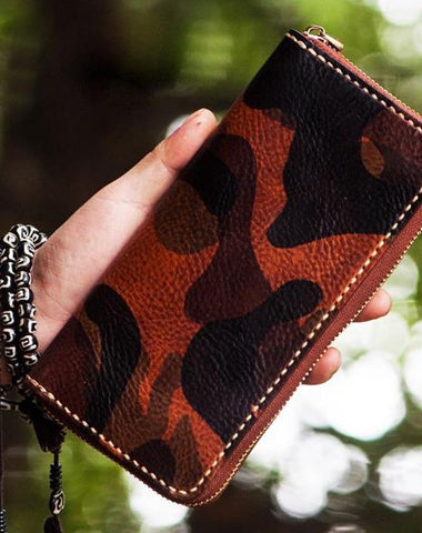 Style: Handmade Leather Men Camouflage Cool Leather Wallet Long Phone Clutch Wallets for Men