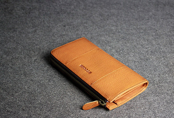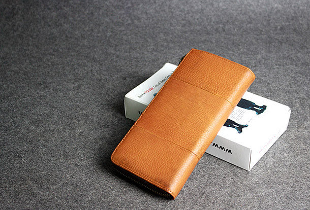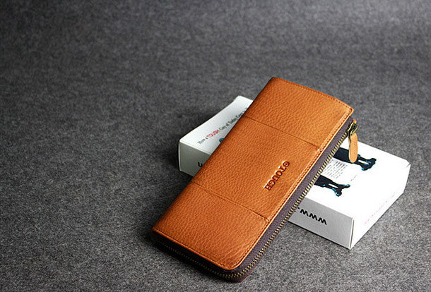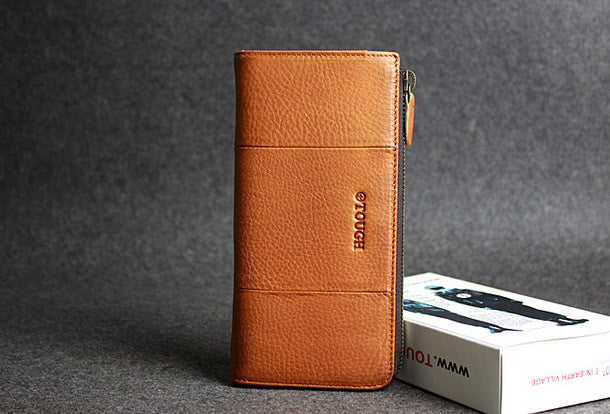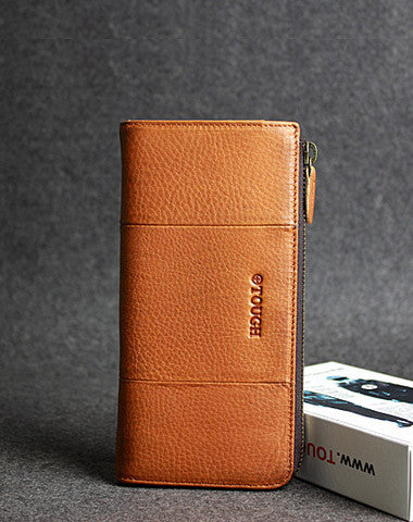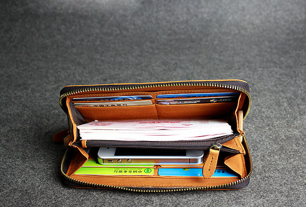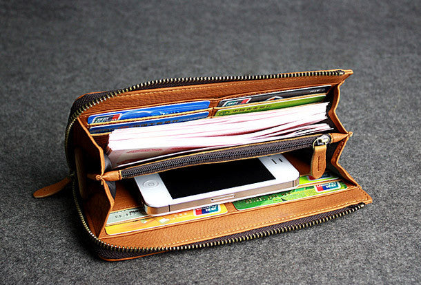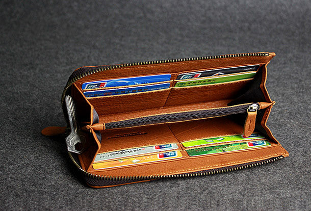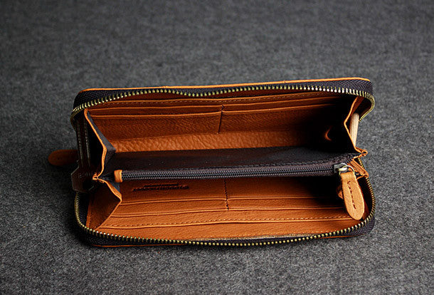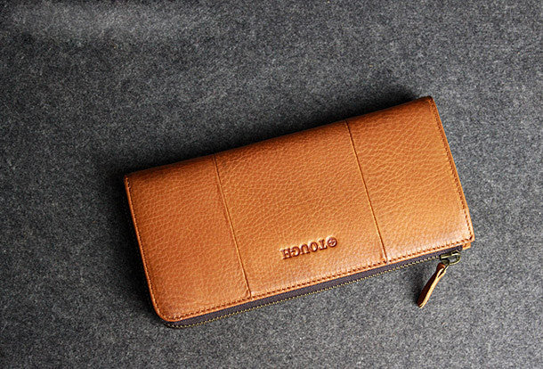 Handmade leather men clutch brown vintage zip clutch men long wallet purse clutch