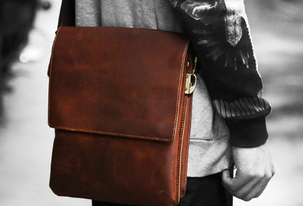 Cool leather mens messenger bag vintage shoulder laptop bag for men