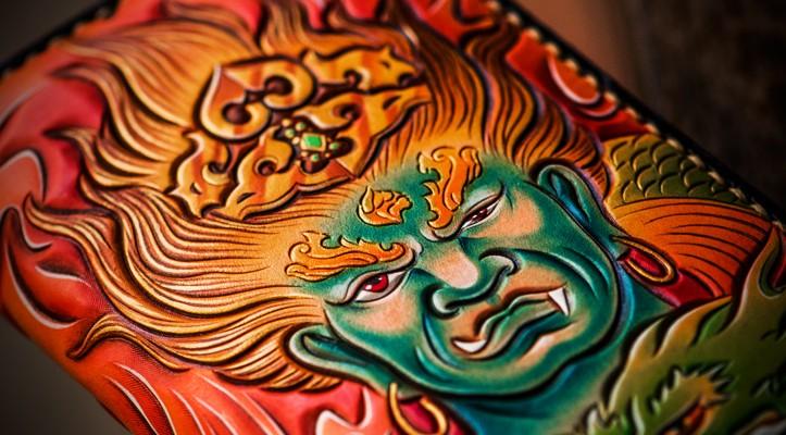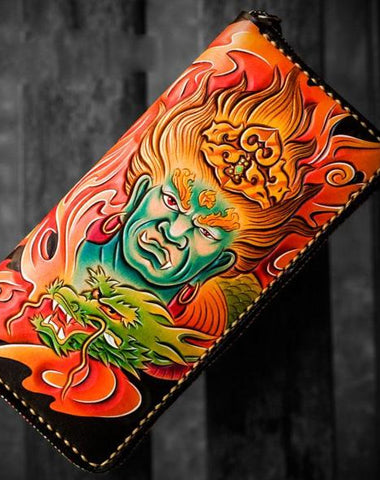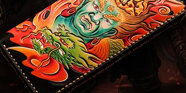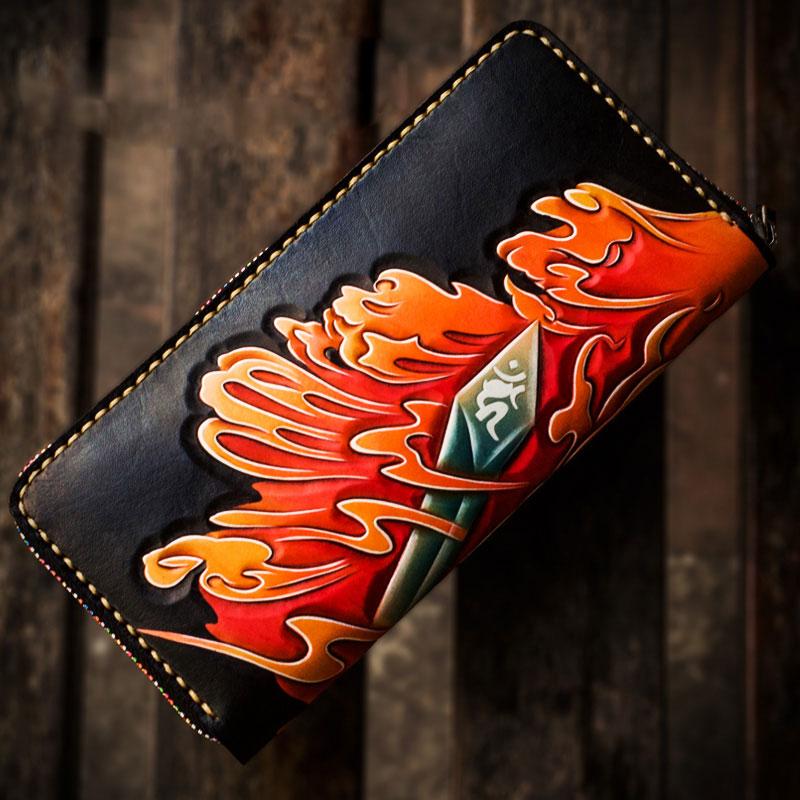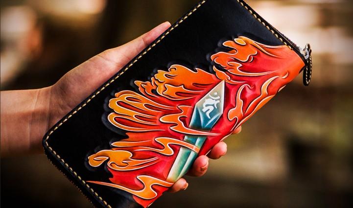 Design: Handmade Leather Men Tooled Acalanatha Cool Leather Wallet Long Phone Clutch Wallets for Men