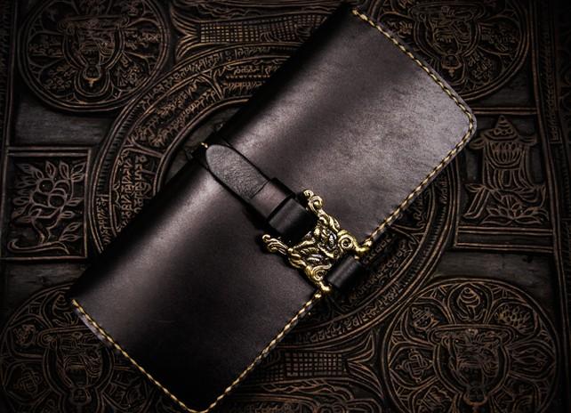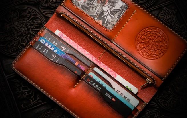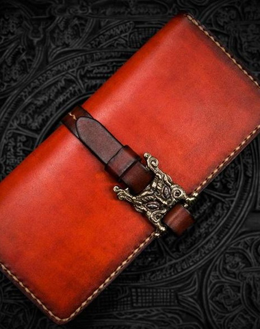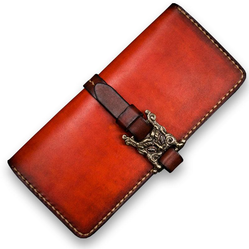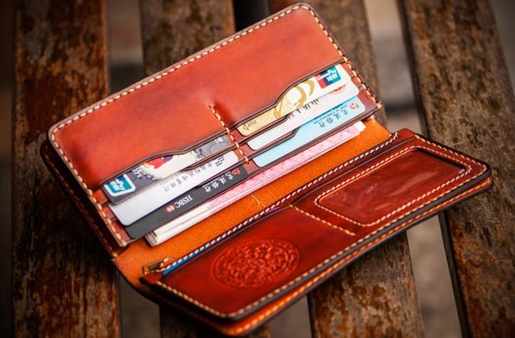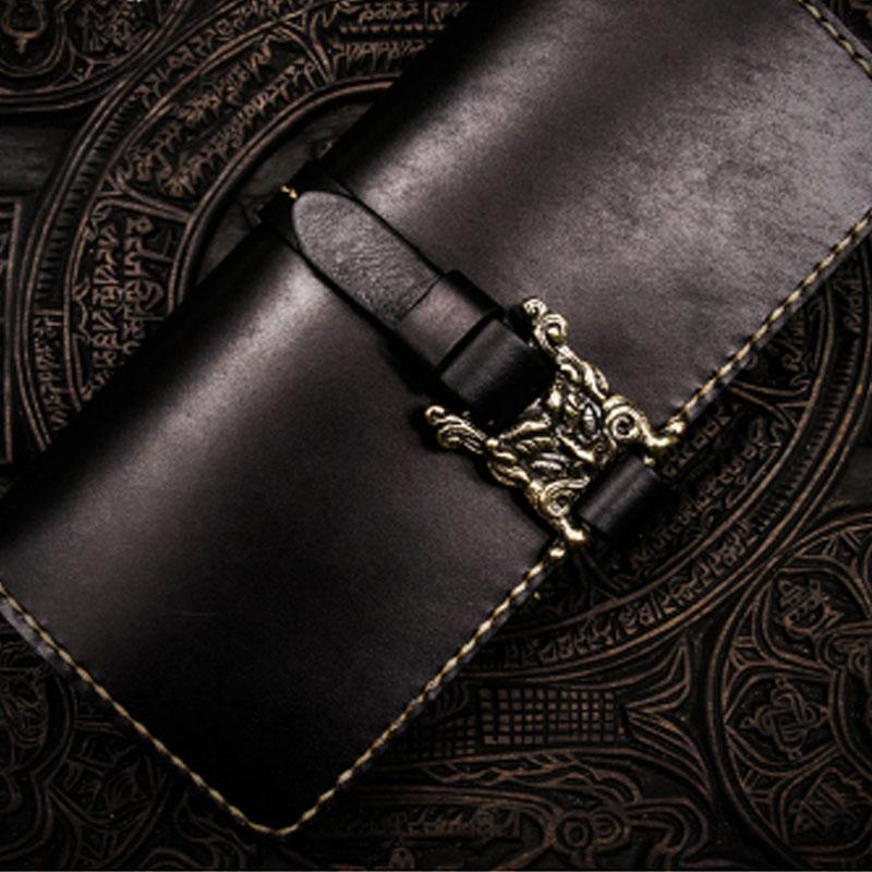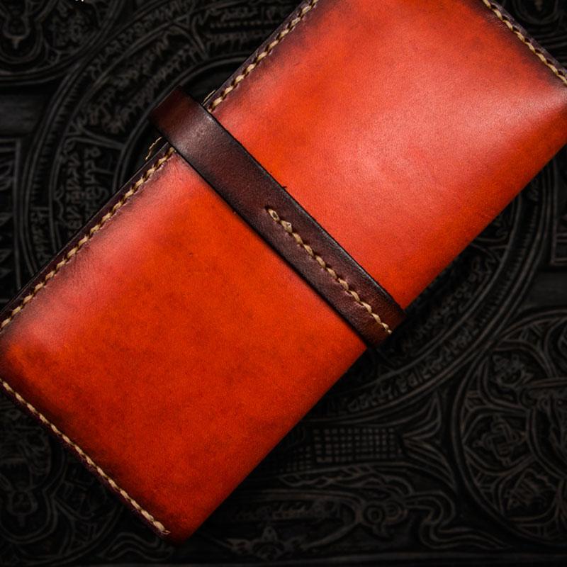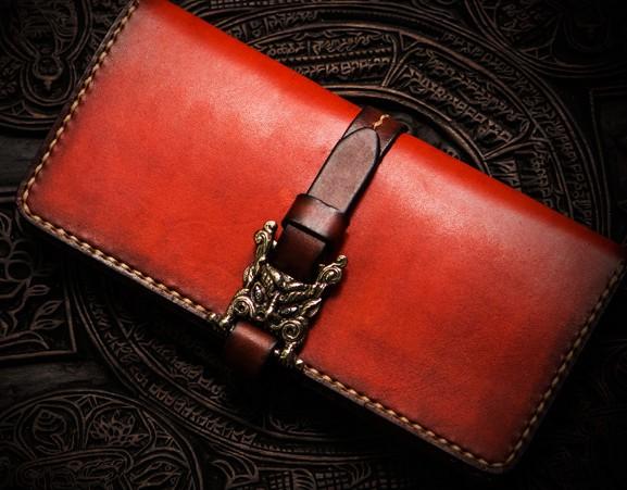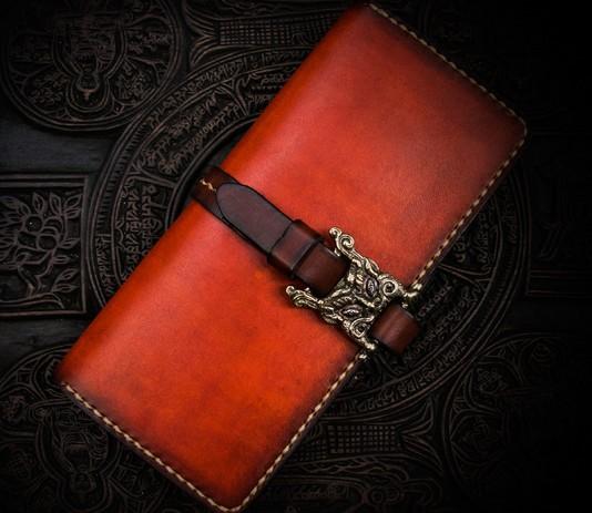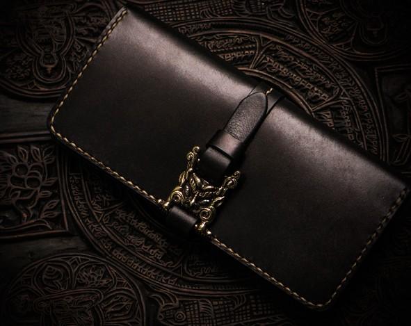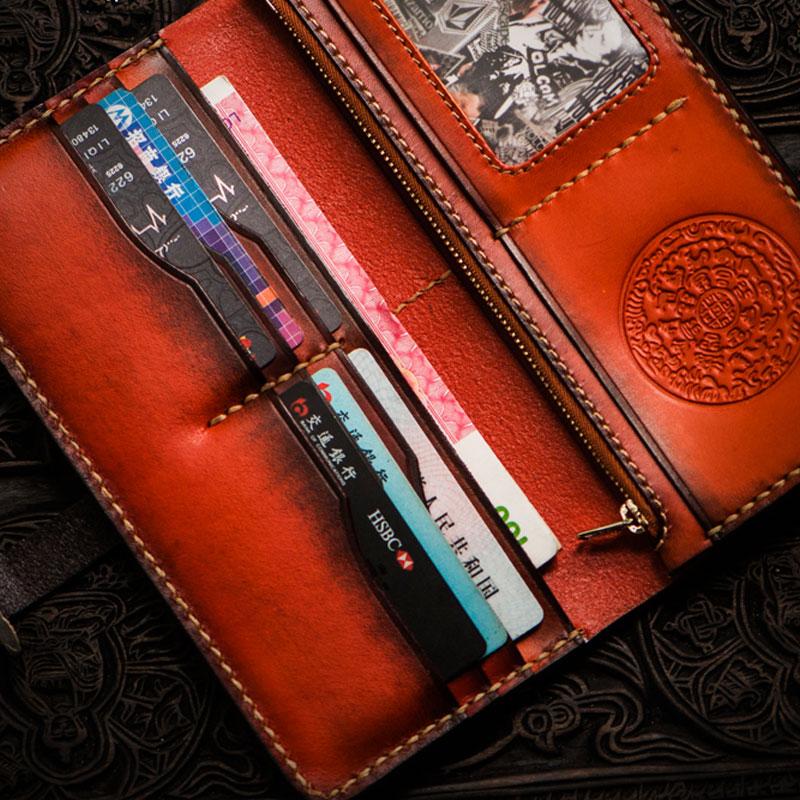 Handmade Leather Mens Cool Long Leather Wallet Long Wallets for Men