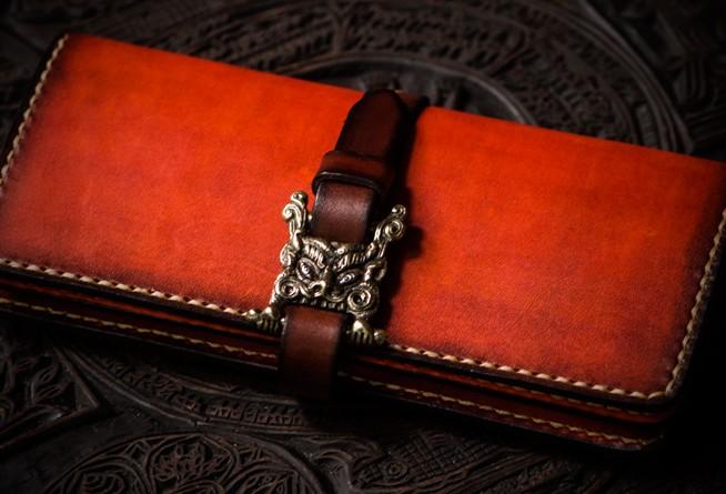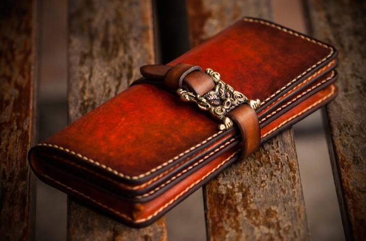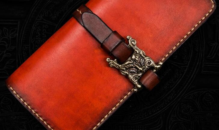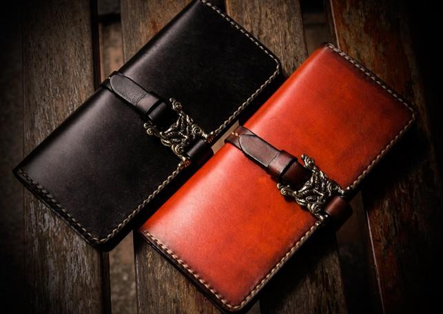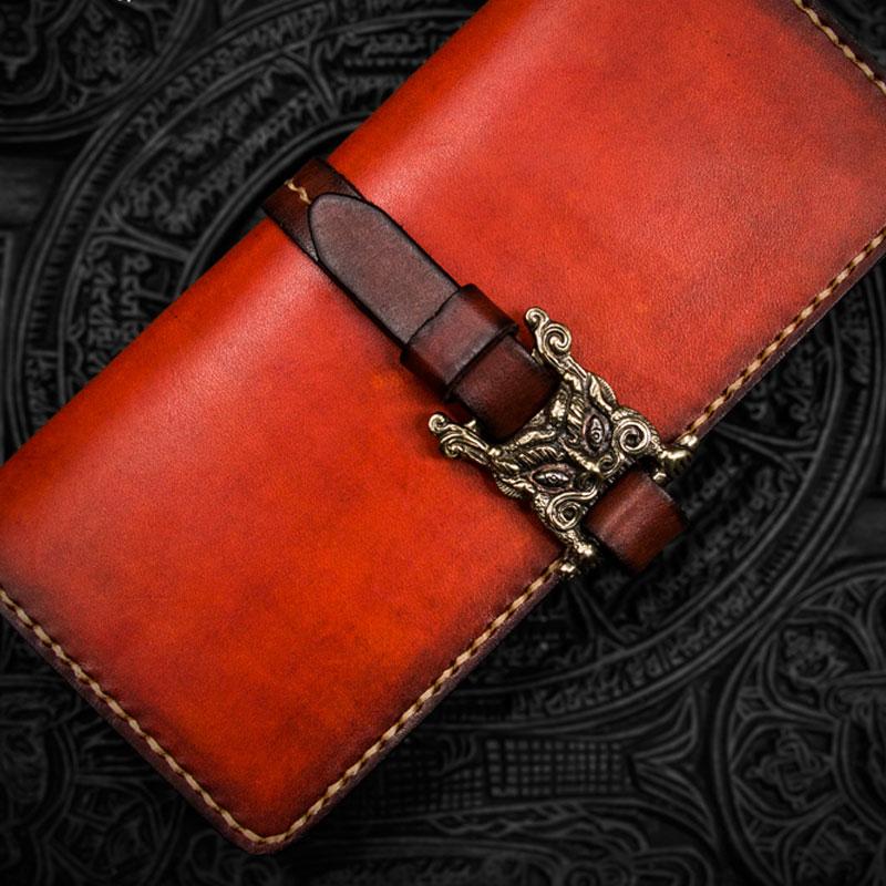 Design: Handmade Leather Men Tooled Cool Leather Wallet Long Phone Wallets for Men