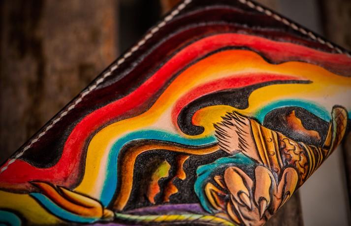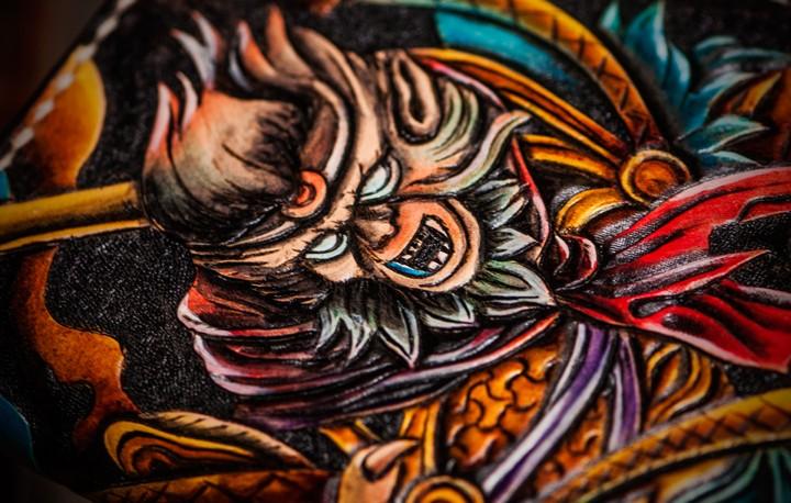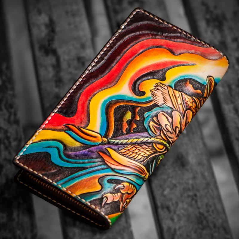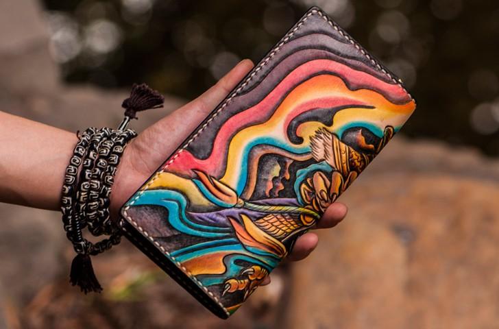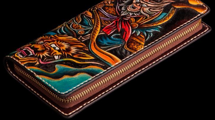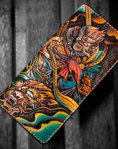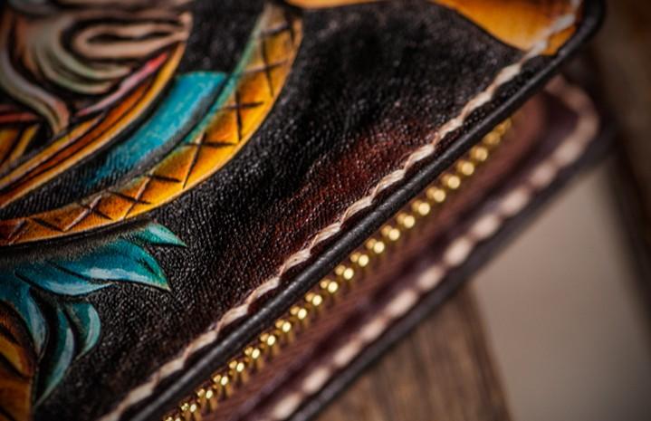 Design: Handmade Leather Men Tooled Monkey King Cool Leather Wallet Long Phone Clutch Wallets for Men