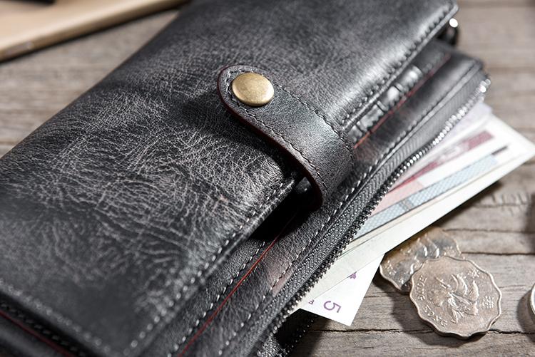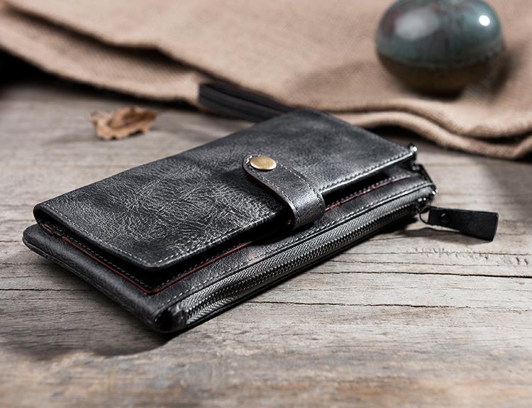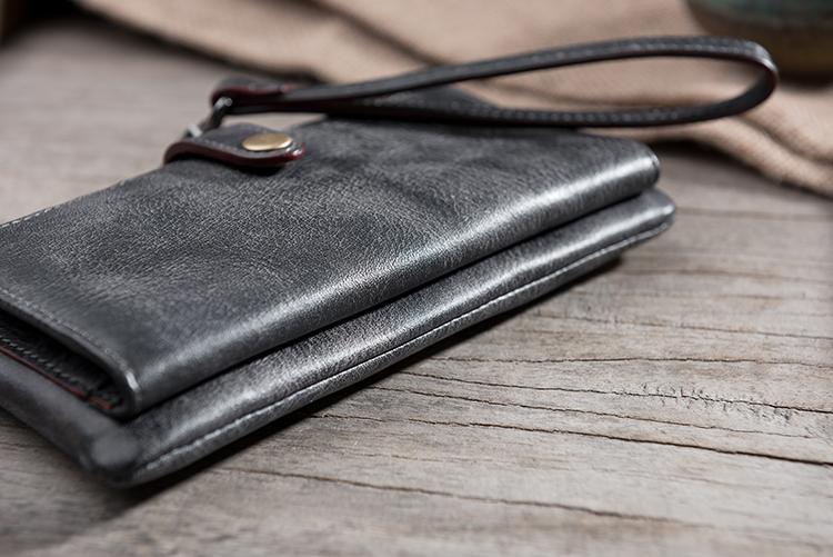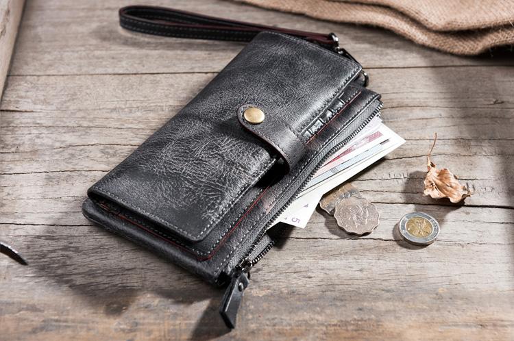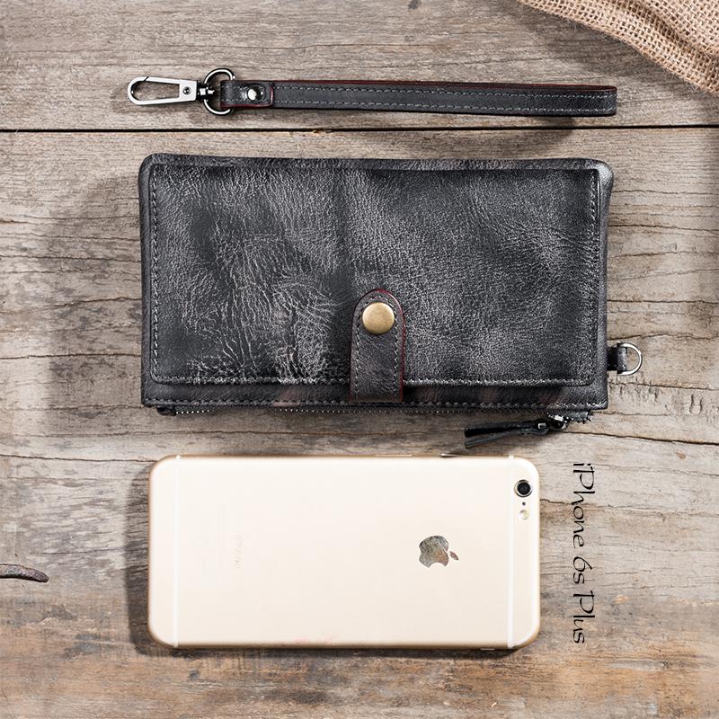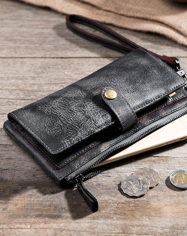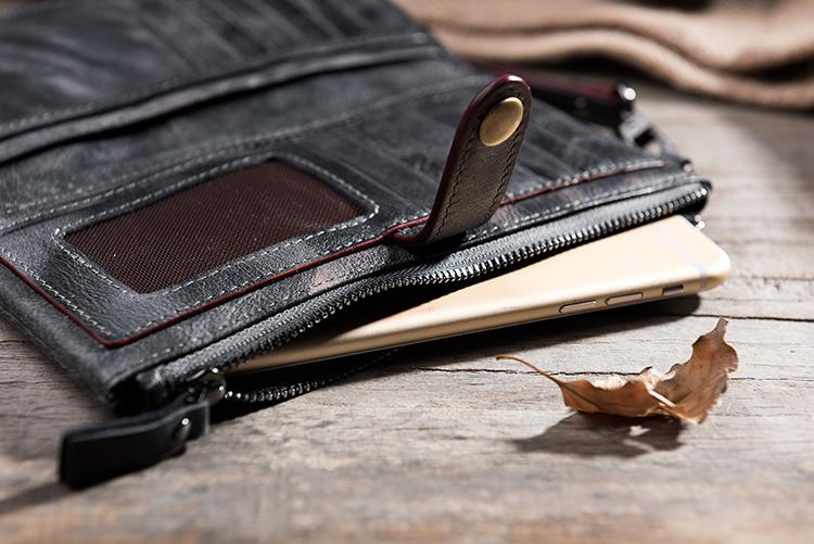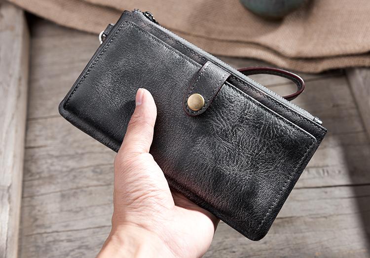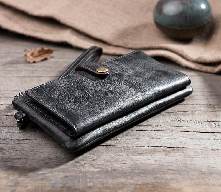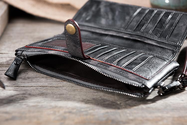 Style: Handmade Leather Mens Biker Wallet Cool Leather Wallet Long Wrist Wallets for Men