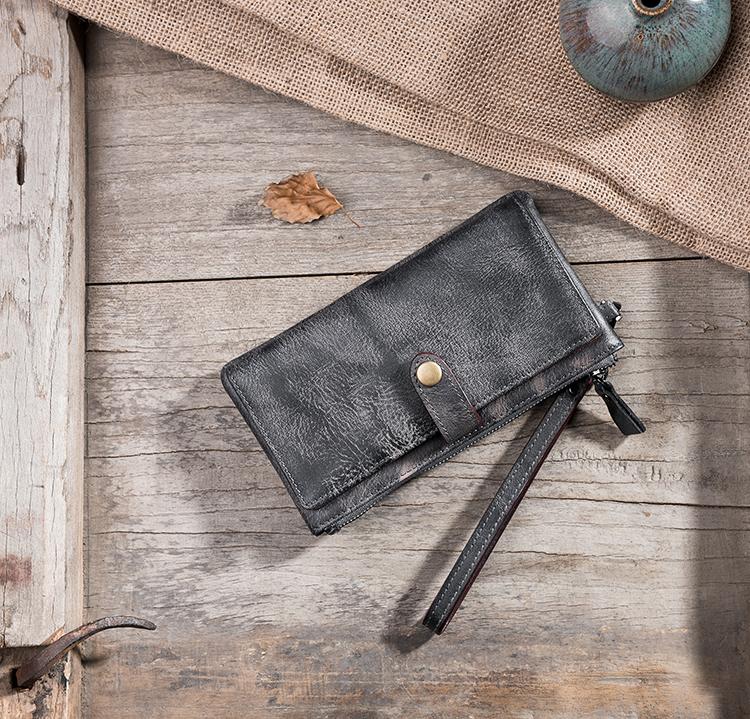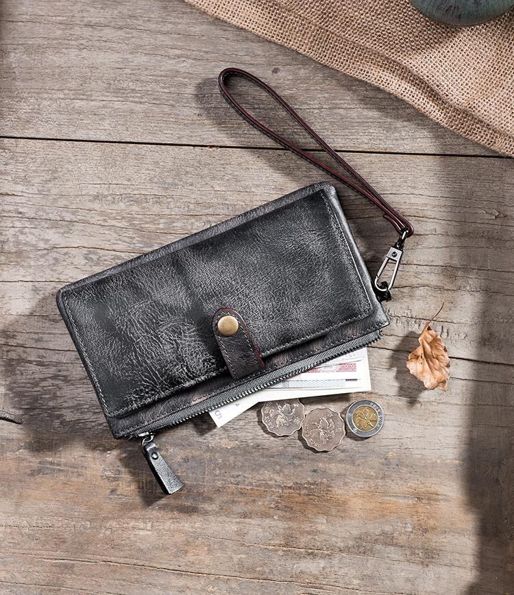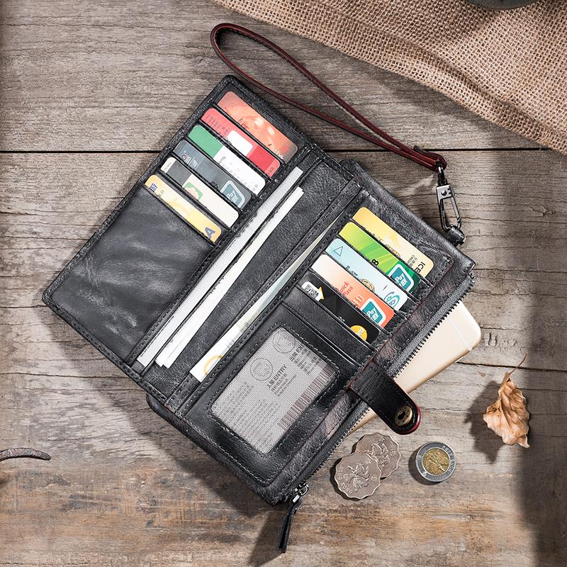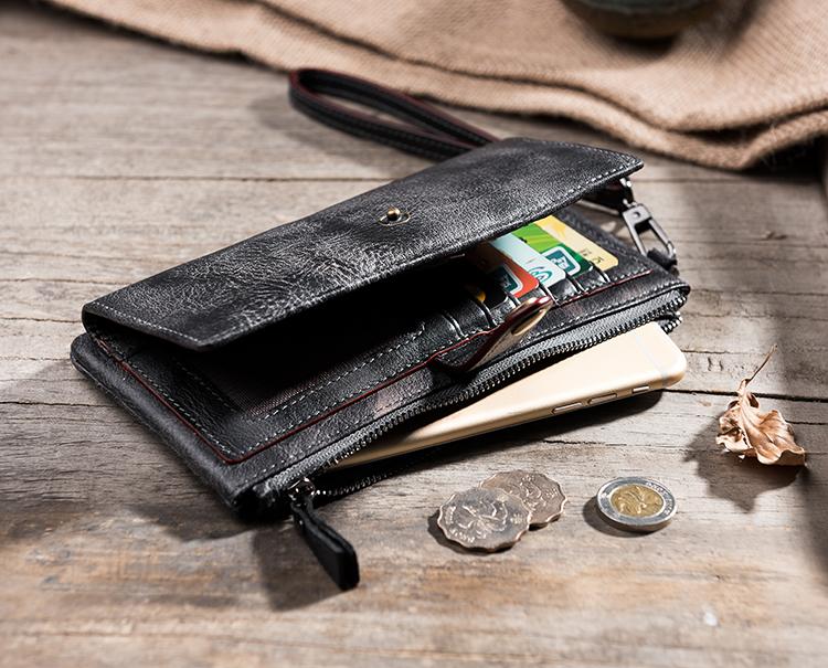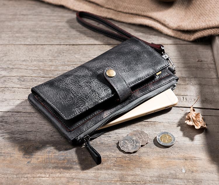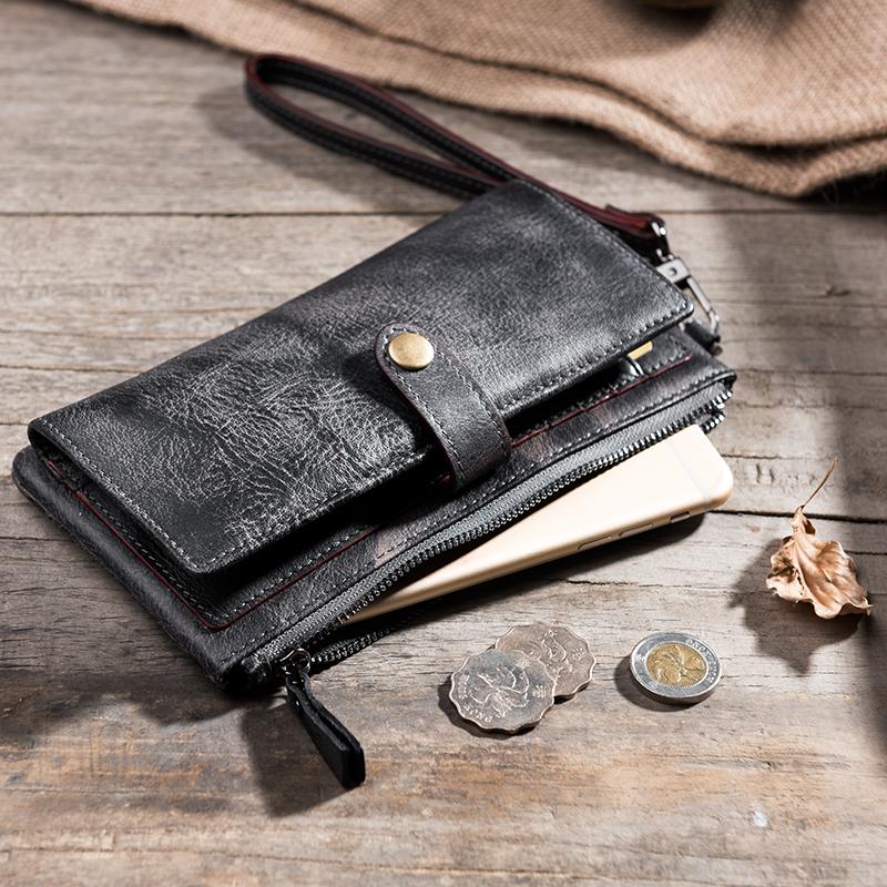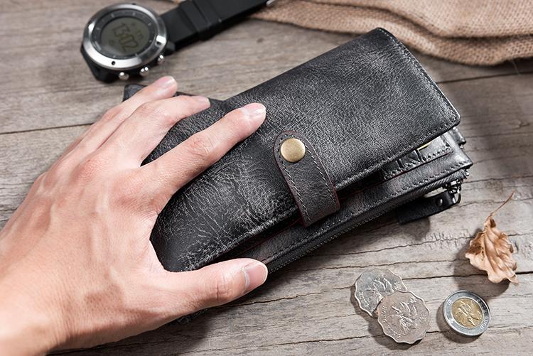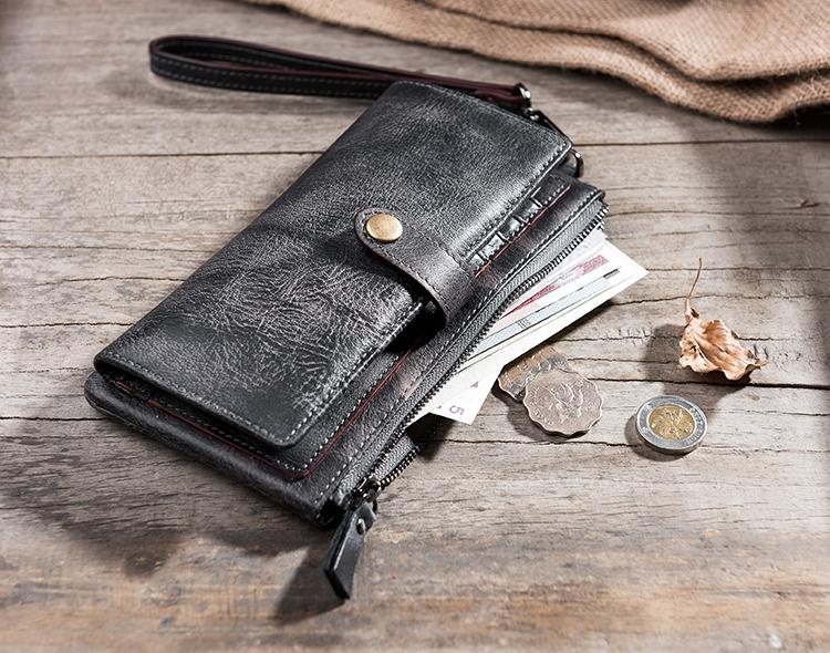 Style: Handmade Leather Mens Biker Wallet Cool Leather Wallet Long Wrist Wallets for Men