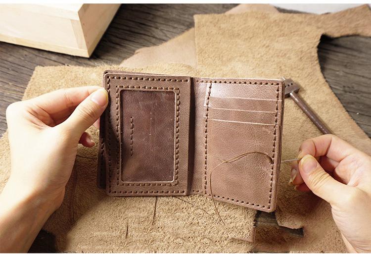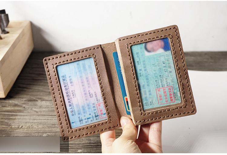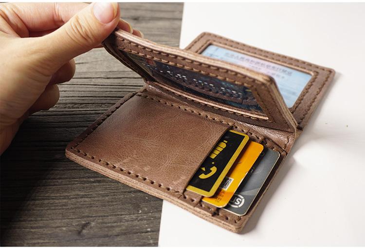 Design: Handmade Leather Mens Black Card Holders License Wallets Slim Bifold Card Wallet for Men