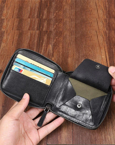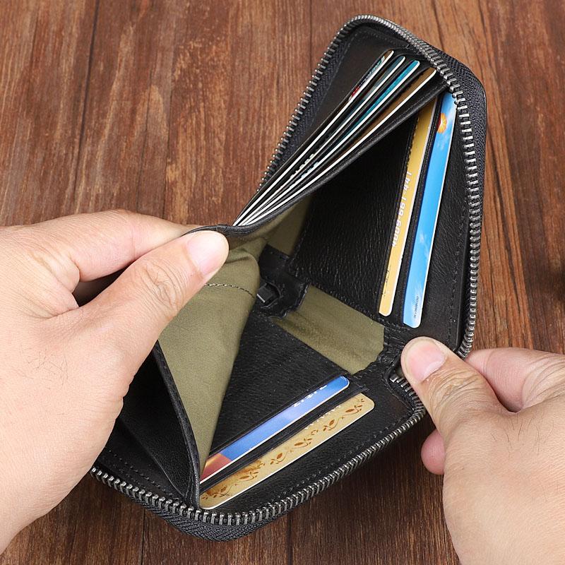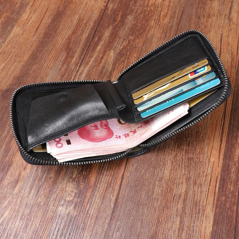 Style: Handmade Leather Mens Black Multi-function Chain Biker Wallet Cool Leather Wallet Bifold billfold Wallets
