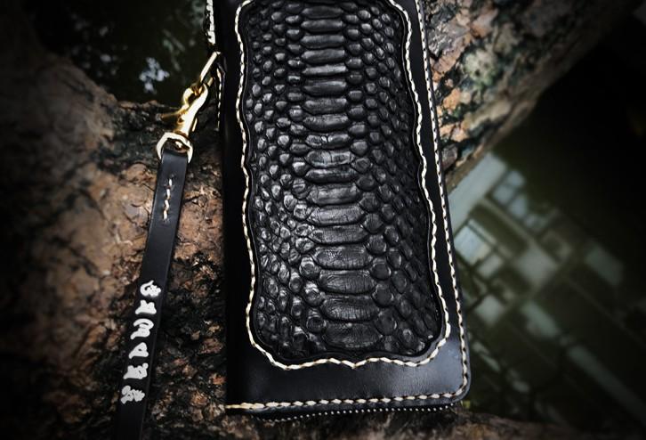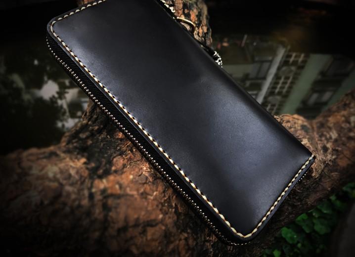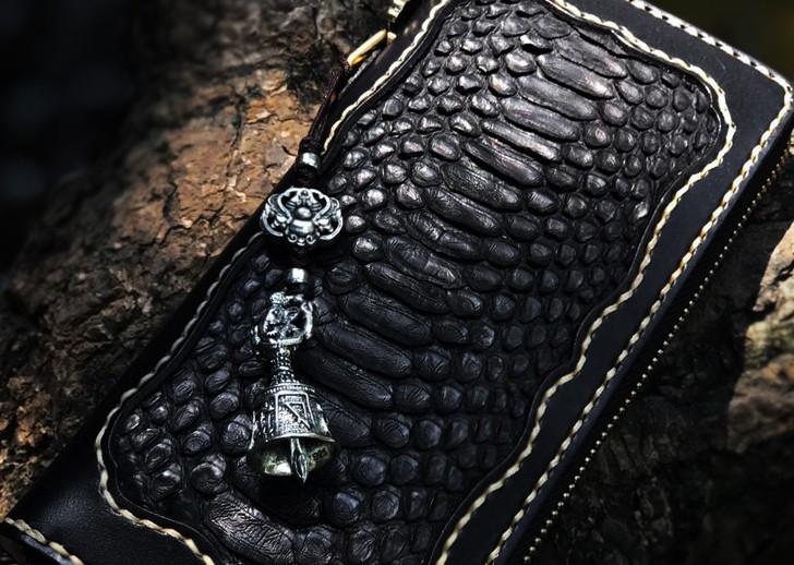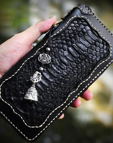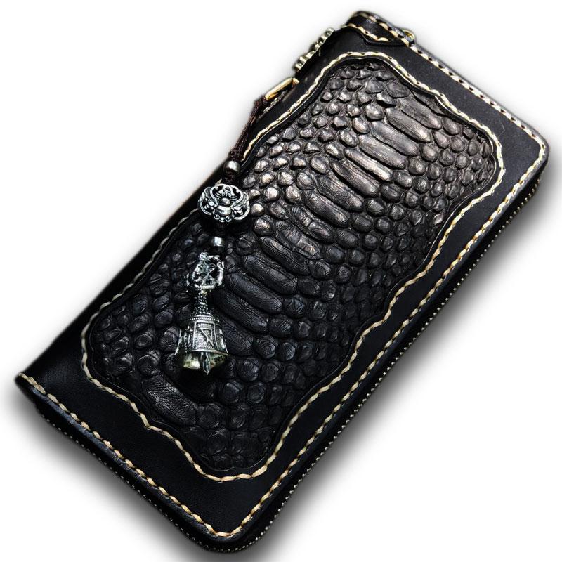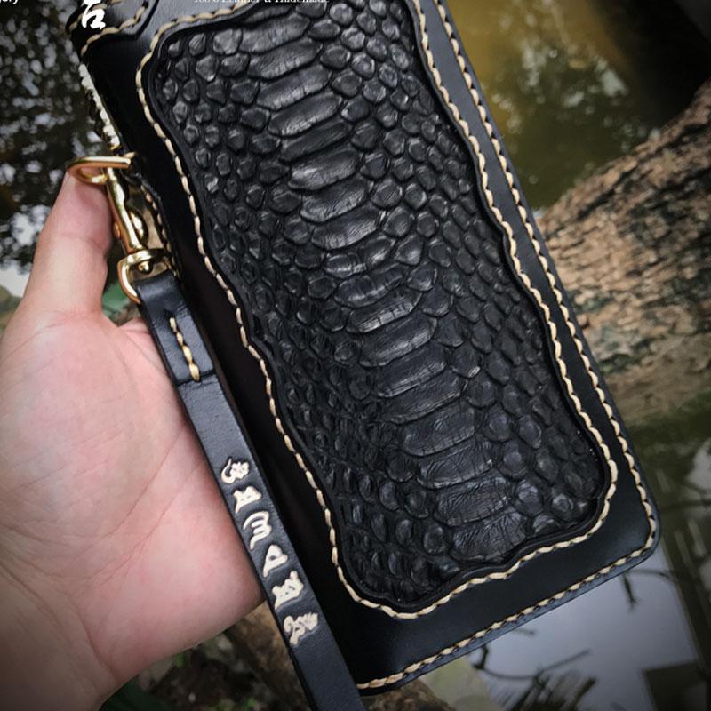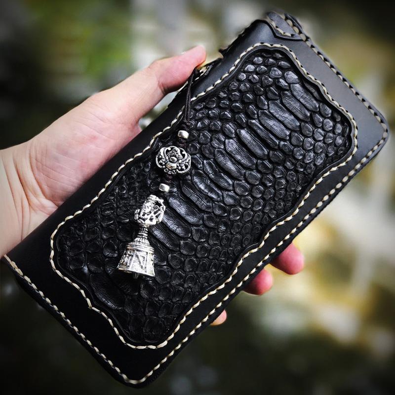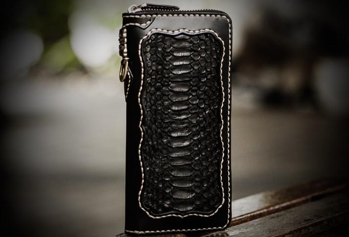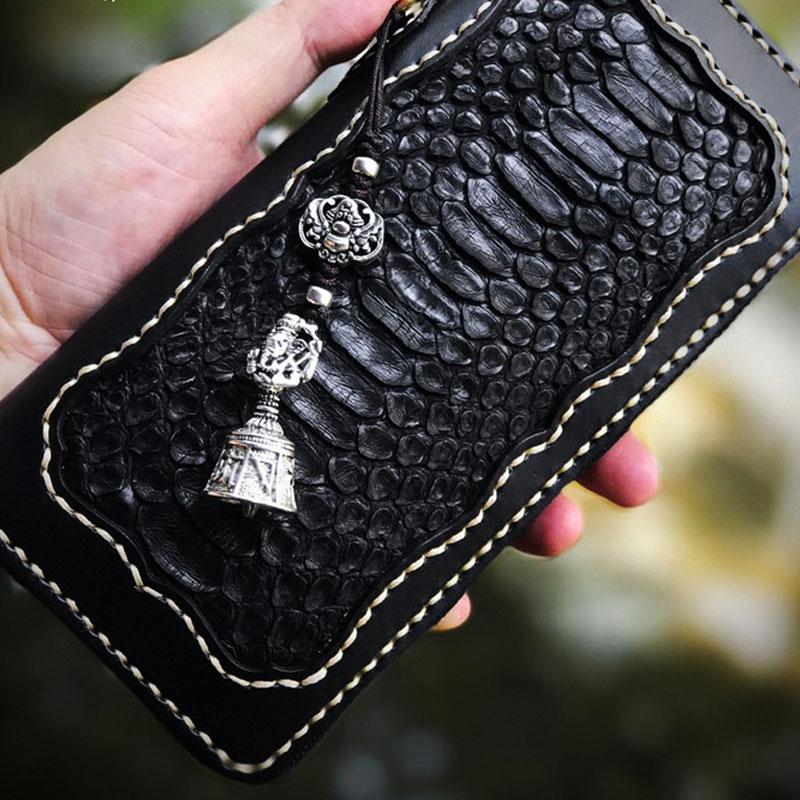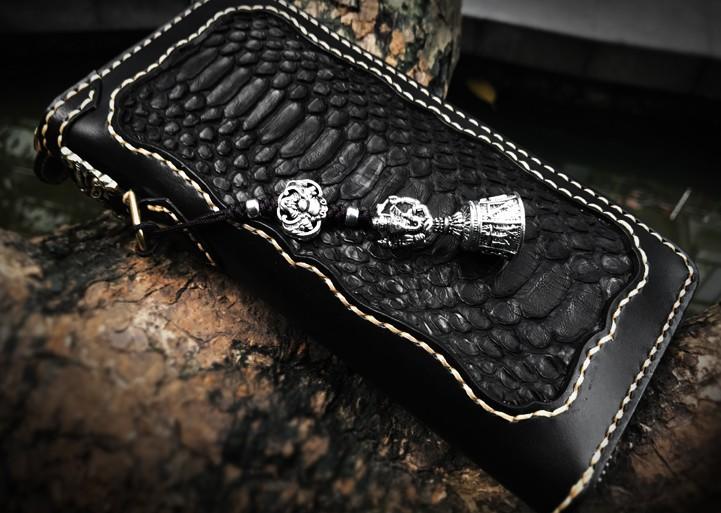 Design: Handmade Leather Mens Chain Biker Wallet Cool Leather Wallet Long Clutch Wallets for Men