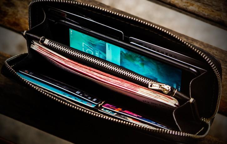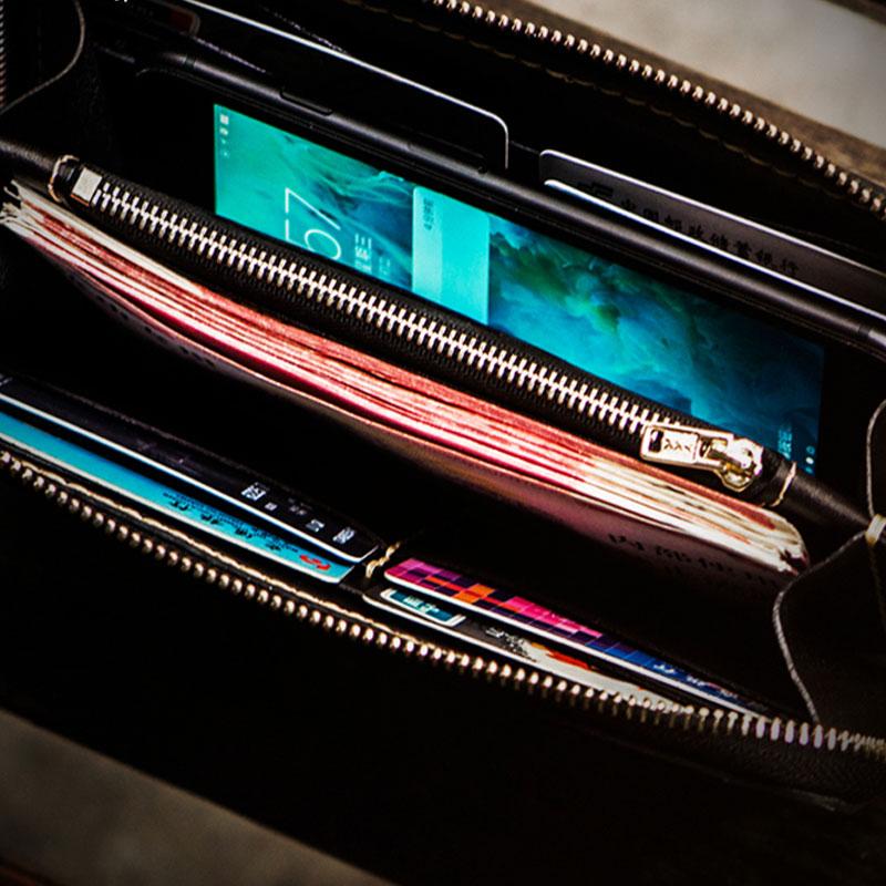 Slots: 2 full size bill slot, 8 card holders, 1 zipper slot