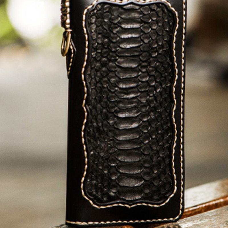 Style: Handmade Leather Mens Chain Biker Wallet Cool Leather Wallet Long Clutch Wallets for Men