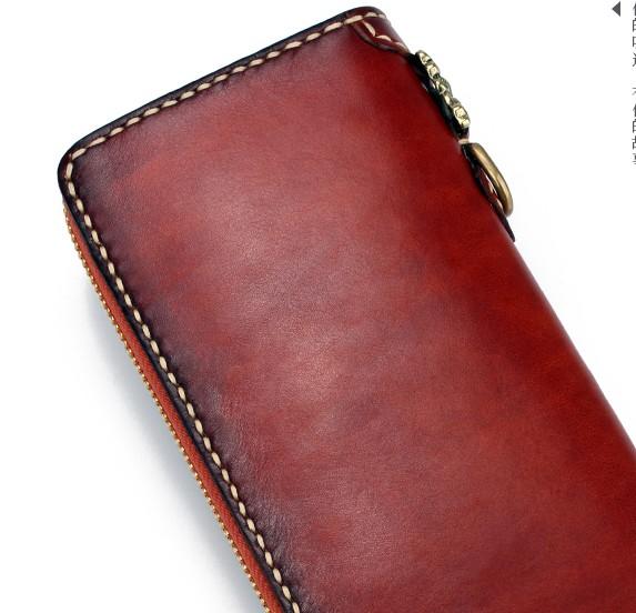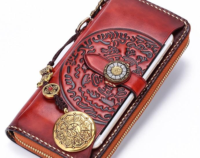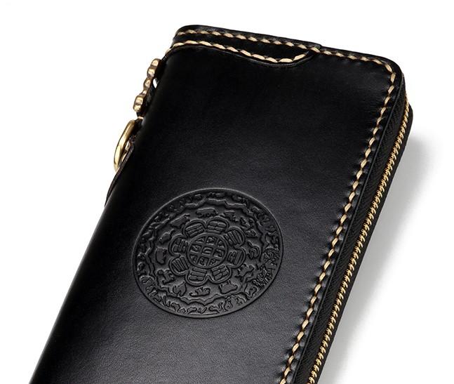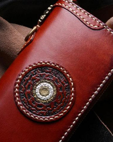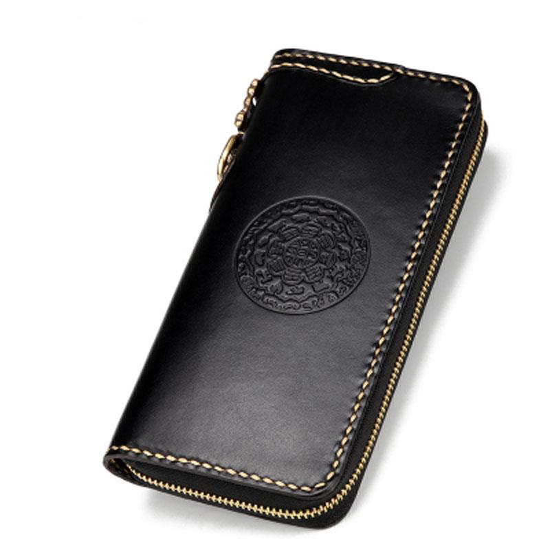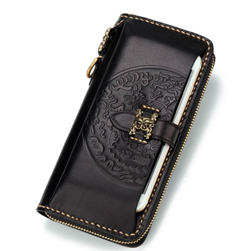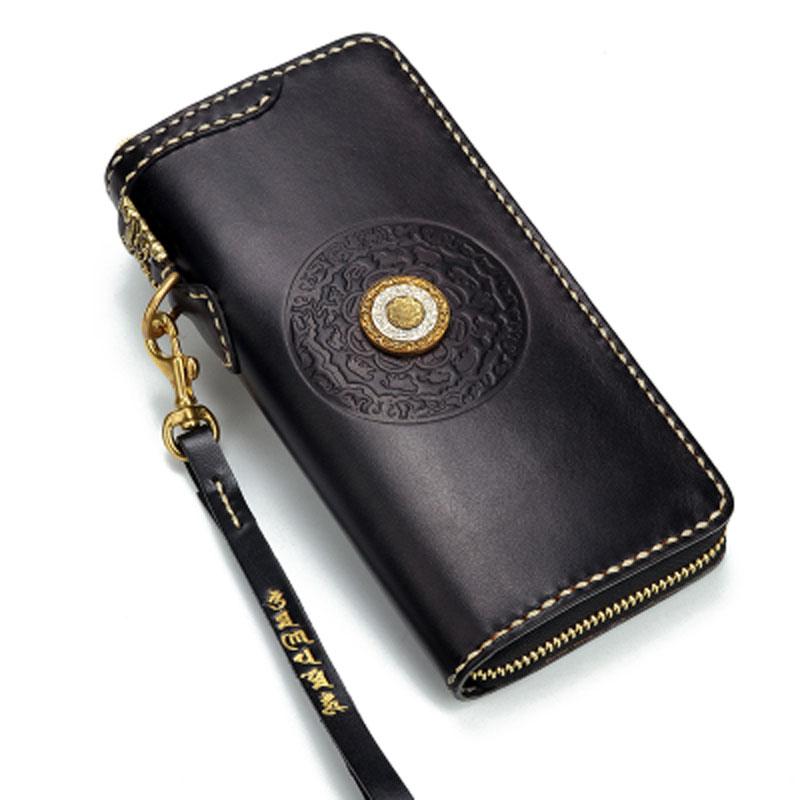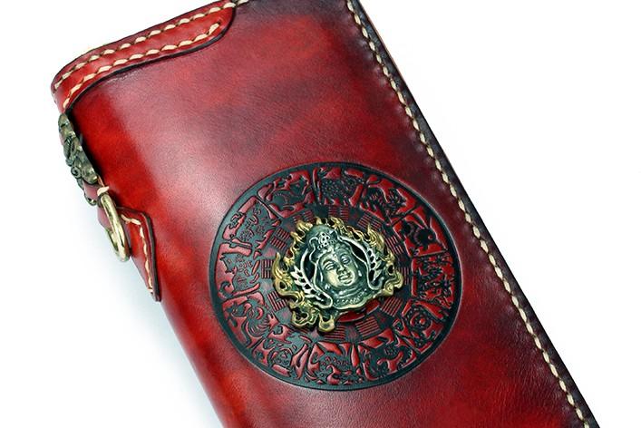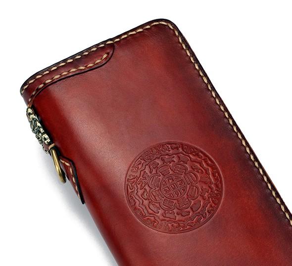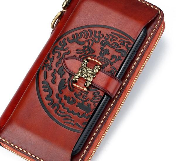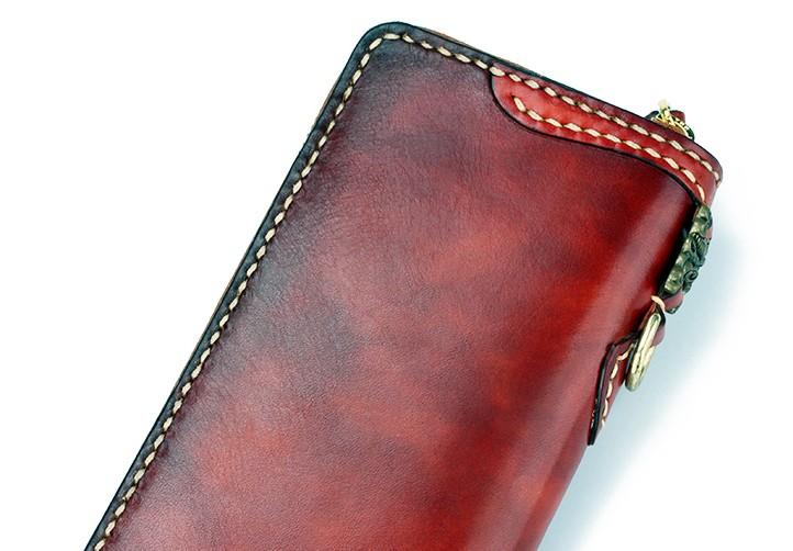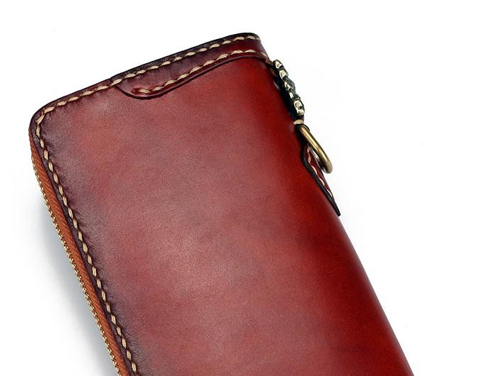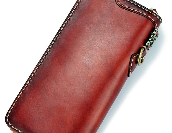 Handmade Leather Mens Chain Biker Wallet Cool Leather Wallet Long Phone Wallets for Men