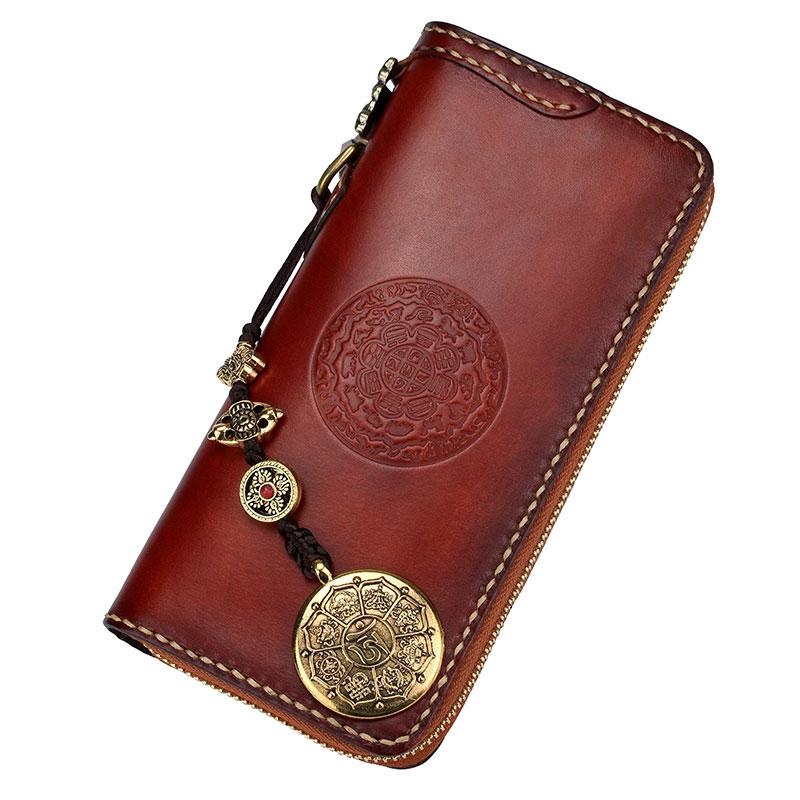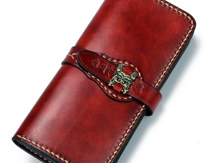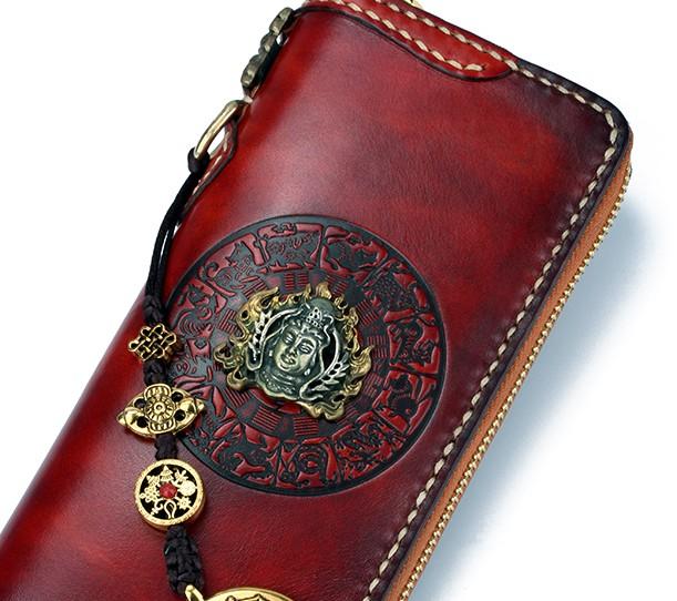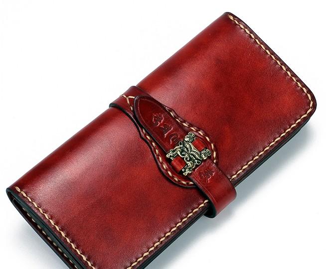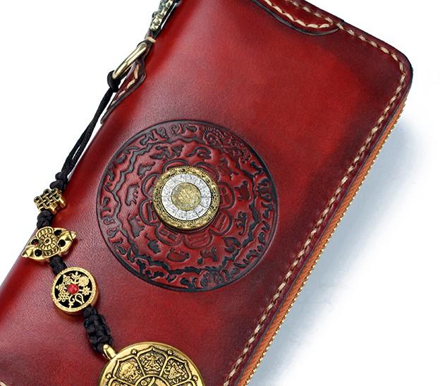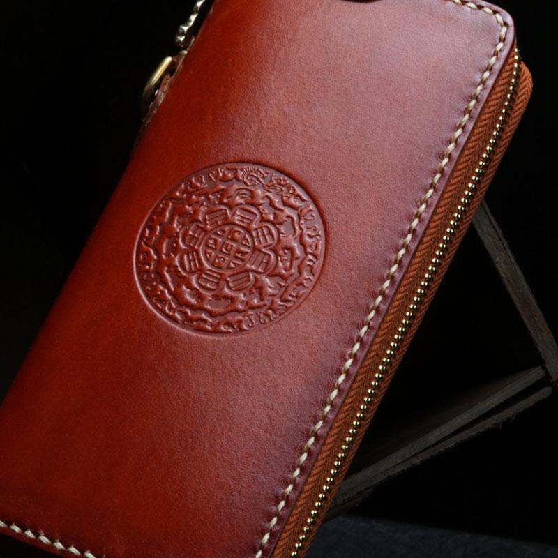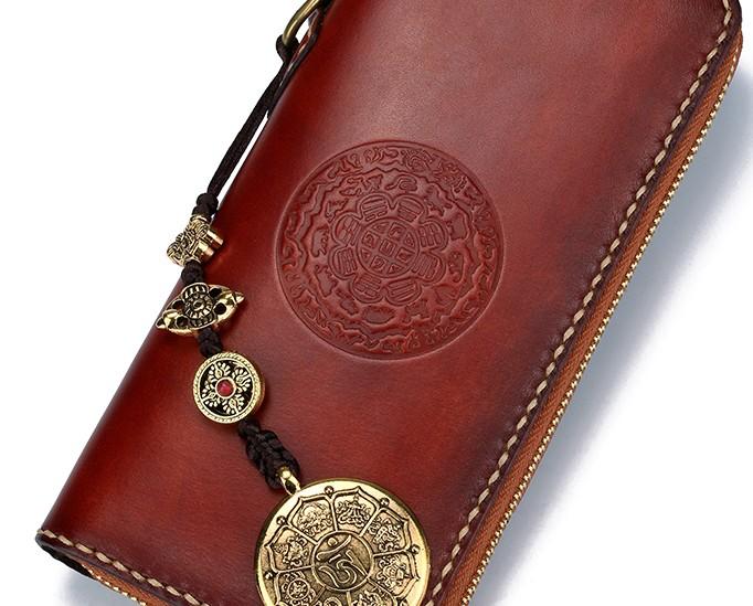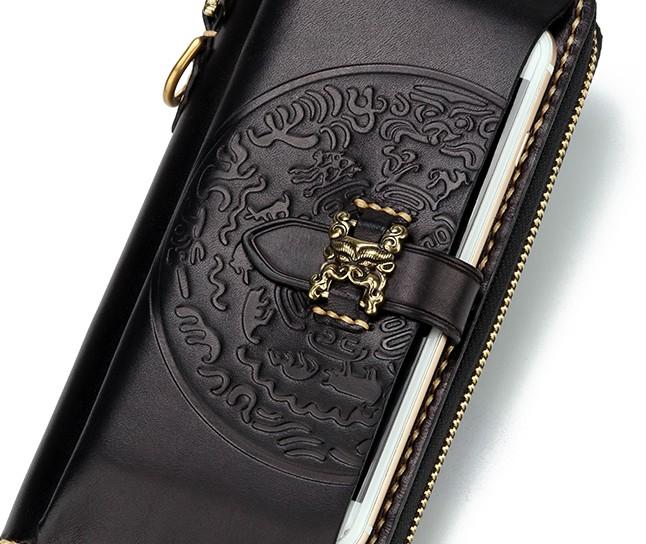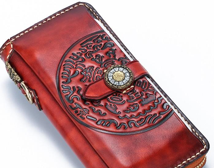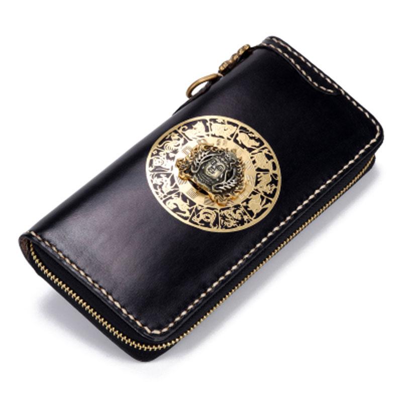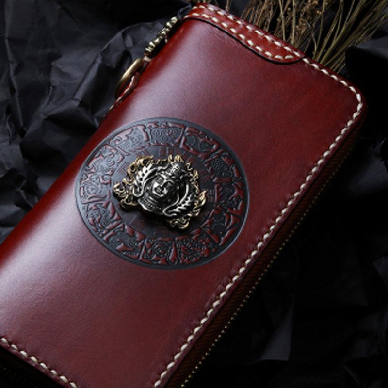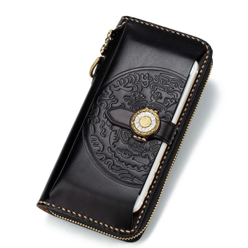 Handmade Leather Mens Chain Biker Wallet Cool Leather Wallet Long Phone Wallets for Men