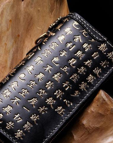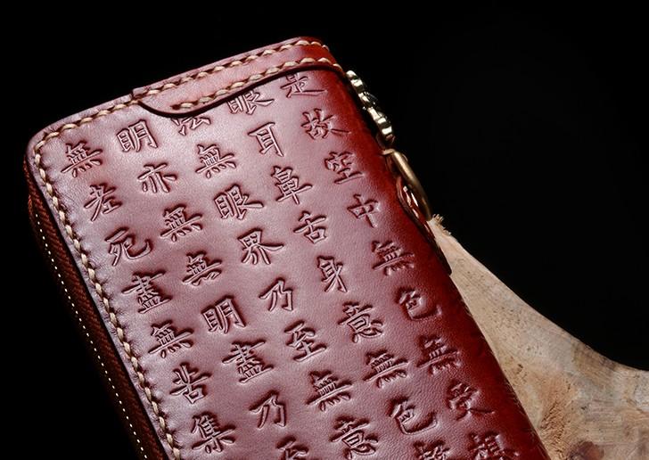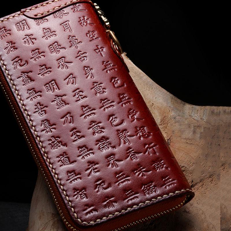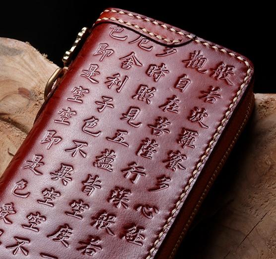 Design: Handmade Leather Mens Chain Prajna Paramita Biker Wallet Cool Leather Wallet Long Phone Wallets for Men