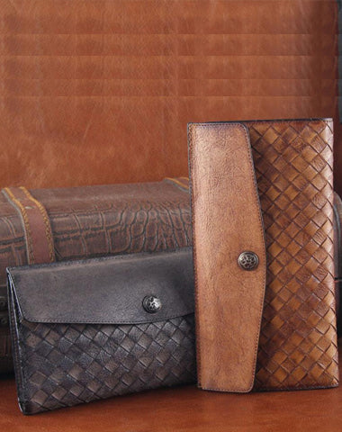 Style: Handmade Leather Mens Clutch Cool Braided Wallet Clutch Wristlet Wallet for Men