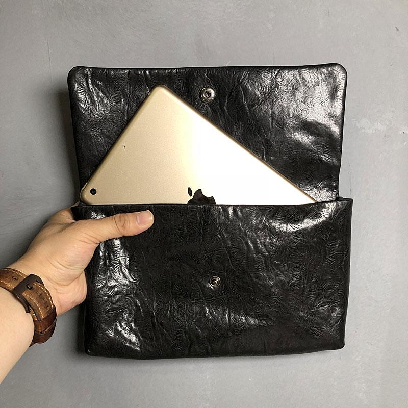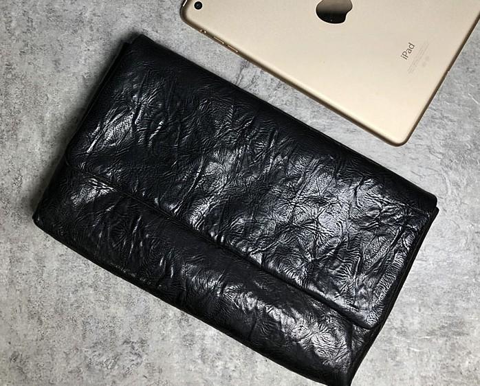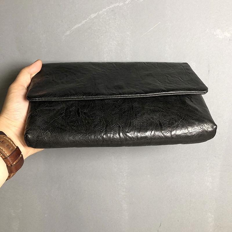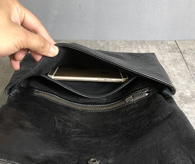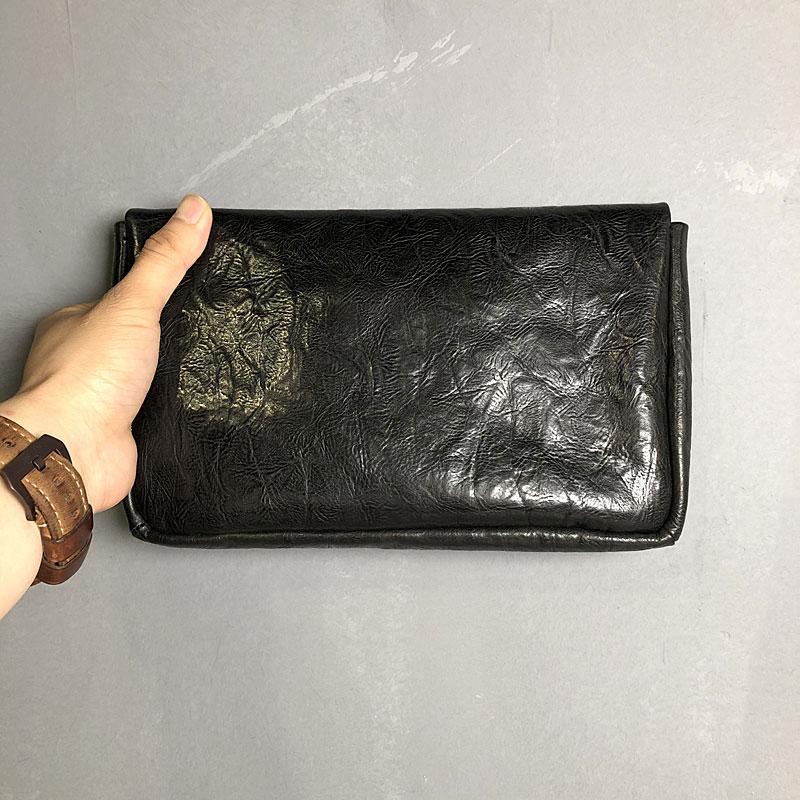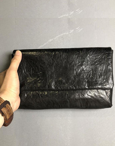 Design: Handmade Leather Mens Clutch Cool Slim Wallet Zipper Clutch Wristlet Wallet for Men